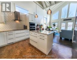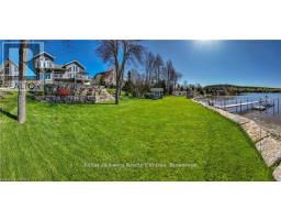 Discover the pinnacle of waterfront luxury on the Bruce Peninsula with this exquisite custom-built home, crafted in 2014. This property epitomizes elegance, set against the tranquil backdrop of Little Lake with 100 ft of pristine shoreline. Ideal for swimming and boating, it comes fully equipped with dock sections, ensuring a premium waterfront experience with direct access to Georgian Bay through a dredged channel and described as a "safe harbor" by our OPP. Spanning 3,621 sq. ft. across three finished levels, the home offers three bedrooms, three bathrooms, 2 kitchens and unparalleled living spaces. Interior highlights include bamboo flooring, Cambria quartz countertops, and a comprehensive stainless steel appliance package. The layout is thoughtfully designed for both privacy and entertainment, featuring 20 ft high ceilings on the main floor with beams that evoke a very nautical feel, adding to the home's unique charm. At the heart of this home is a majestic stone, floor-to-ceiling, see-through propane fireplace. The primary bedroom suite boasts sweeping water views, a private balcony with composite decking, and glass railings. The outdoor living space is equally impressive, featuring a partially covered deck that overlooks the water, offering breathtaking views. The property includes a cozy TV room with water vistas, a spacious lower level walkout with a second kitchen, and ample space for recreational activities, perfect for extended family or guests. Less than a year old Continental furnace. Additionally, a 22x30 detached garage and abundant storage cater to all seasonal needs. Nestled in the delightful community of Barrow Bay, this home is not just a residence but a retreat, offering a lifestyle where serene beauty meets luxury. Experience a new standard of living in this waterfront gem, where every detail is meticulously crafted for comfort and elegance. (id:46441)