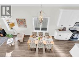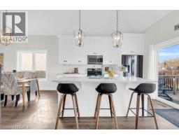 Welcome to this beautifully designed end unit townhome in the charming lakeside community of Port Dover located in a very quiet area just minutes from the beach shops restaurants and everything this beautiful town has to offer. As you enter the home you are greeted by soaring ceilings modern lighting and an open concept layout filled with natural light. The western exposure allows sunlight to fill the space from morning through the afternoon creating a warm and inviting atmosphere throughout the main living area.The modern kitchen features white cabinetry quartz countertops stainless steel appliances a built in microwave and a large island perfect for gathering with family and friends. The kitchen flows seamlessly into the spacious living and dining areas finished with wide dark engineered plank flooring that adds a contemporary and elegant feel.The main floor primary bedroom offers comfort and privacy with a walk in closet and private ensuite bath allowing for convenient main level living. Upstairs you will find two additional spacious bedrooms and a full bathroom ideal for family guests or a home office.A convenient laundry room with quartz counter and easy inside access to the garage adds everyday practicality. Neutral colour walls the end unit position and the excellent sun exposure provide plenty of natural light throughout the home. Step outside to enjoy the two level patio perfect for relaxing or entertaining with no neighbours overlooking you only open pasture behind you offering a rare sense of privacy and tranquility. Located just minutes from Port Dover’s beach marina restaurants and quaint downtown this home combines modern comfort with the relaxed lifestyle of one of Ontario’s most beloved beach towns (id:46441)