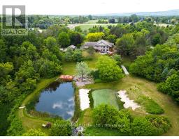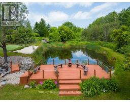 Welcome to 7496 Nottawasaga Sideroad 36/37 a truly one-of-a-kind luxury estate nestled on 4.5 private acres in one of the area's most sought-after neighbourhoods. This custom-built walk-out bungalow offers the perfect blend of elegance, recreation, and tranquility, surrounded by meticulously landscaped grounds and breathtaking natural beauty. Step inside to over 3700 square feet of finished living space, featuring 6 spacious bedrooms and 4 bathrooms, ideal for entertaining guests. The open-concept main floor is flooded with natural light and showcases the view of the property, hardwood floors, and seamless flow between the kitchen, formal dining area, and great room with fireplace. Outdoors, the lifestyle features are second to none unwind in your private hot tub overlooking a tranquil spring-fed pond with a hardscaped waterfall, or perfect your short game on the professionally designed golf green with 5 elevated tee boxes perched above a stream at the top of the home. A winding driveway leads you through what looks like a private resort, offering exceptional privacy Additional highlights include a greenhouse for year-round gardening, abundant storage throughout, and a walk-out lower level. This rare offering is surrounded by estate homes and country estates, just minutes to Collingwood, Blue Mountain, and all the lifestyle amenities of Southern Georgian Bay. Don't miss this opportunity to own a private resort-like property where every detail has been thoughtfully curated. ** This is a linked property.** (id:46441)