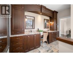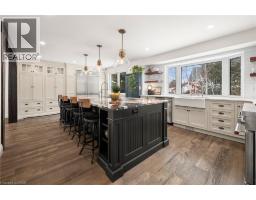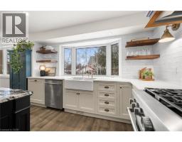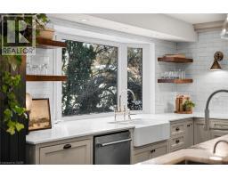 Tucked away at the quiet dead end of Lyon Avenue in the heart of Exhibition Park, this renovated 5 bedroom home offers a rare opportunity in one of Guelph’s most sought after neighbourhoods. Known for its mature tree lined streets, strong sense of community, parks, schools, and walkability to downtown, Exhibition Park consistently holds value. Homes on this street rarely come to market. Thoughtfully expanded and redesigned, the home blends timeless character with modern updates. The kitchen was completely reimagined in 2021 by Newlife Cabinetry Kitchens and showcases quartz and granite counters, a nearly 12 ft island with prep sink, full apron sink overlooking the backyard, oversized gas range with custom hood, built in appliances, and extensive custom cabinetry with premium storage. Abundant windows and cabinet lighting enhance warmth and natural light. The foyer features cathedral ceilings and open to above design with built in cubbies for everyday organization. A French glass pocket door offers flexibility between the kitchen and great room. The dining area, highlighted by a large bay window overlooking the streetscape, flows from the kitchen and can also serve as a formal living space. Just steps down, the spacious great room offers custom built ins, detailed trim work, gas fireplace, garage access, walkout to the yard, and convenient 3 piece bath ideal for pool use. The private primary suite is set in its own wing with 12 ft ceilings, hardwood floors, lounge or office space, and a luxurious ensuite with heated floors, soaker tub, glass shower, granite double vanity, and custom built ins. Four additional bedrooms, upper laundry, and a spa inspired main bath complete the upper level. The backyard is a private oasis featuring a heated Gunite pool, hot tub, conversation area, and raised garden boxes. A partially finished lower level with high ceilings, framed space, rough in bath, storage, and cold room offers future potential. Exhibition Park living awaits. (id:46441)
