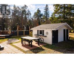 Privately enveloped by mature trees, this spacious and inviting home sits on a beautiful 1.33-acre level lot just minutes outside of Huntsville. Offering over 4,200 sq. ft. of finished living space, this property is designed for comfort, flexibility, and everyday living - ideal for growing families, entertaining, or creating dedicated hobby and work areas. The main level features a warm, functional kitchen with custom cabinetry, granite countertops, a pantry, and a matching hutch with seating that can remain. The adjoining living area offers a cozy electric fireplace, while the bright sunroom is the perfect place to enjoy morning coffee overlooking the backyard. A convenient 2-piece bath completes this level. Upstairs, the primary suite offers a generous sitting area, walk-in closet, and a private ensuite with jetted tub and separate shower. An additional bedroom and a well-designed laundry space with custom cabinetry complete the second floor. The finished third level provides flexible space for a bedroom, studio, playroom, or home office.The lower level features a large, naturally lit recreation room with custom cabinetry, a hobby/storage room, and plenty of space for future personalization. Outside, enjoy evenings under string lights, gather around the fire pit, or cool off in the above-ground pool (approx. 3 years old, sand pump included). The yard is beautifully landscaped with mature evergreens, apple and pear trees, productive grape vines, and a blueberry bush. A wrap-around, fully lit porch and perennial-lined walkways add charm and character. Additional updates include shingles and eavestroughs (2023), owned hot water tank, oil-forced air heating with humidifier, garbage disposal, sunroom window coverings, and outdoor dining table with benches. A peaceful setting with easy access to Huntsville amenities, this home offers space, comfort, and a beautiful natural backdrop. (id:46441)