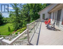 Set on 3.4 acres of beautifully landscaped grounds, this spacious 3-bedroom, 4-bathroom home perfectly balances privacy, functionality, and comfort. Inside, soaring ceilings and a thoughtful layout create an inviting atmosphere. A versatile bachelor in-law suite-with its own heating system and bathroom-is currently used as a bright and productive home office. Step outside to the expansive back deck, ideal for entertaining or simply relaxing while you take in serene views of the surrounding green space. The yard has been carefully designed for enjoyment year-round, complete with a cozy fire pit area. The generous garage accommodates two cars and a motorbike, with a full workshop and extra storage space below-perfect for hobbyists or those needing room to tinker. An exciting opportunity adds even more value to this property: the process of severing a 1-acre lot from the main parcel is underway, creating the potential for future development, investment, or multi-generational living. The property is being offered as a package deal, allowing the buyer to secure both the existing residence and the newly severed lot-an exceptional combination of lifestyle and long-term potential. (id:46441)