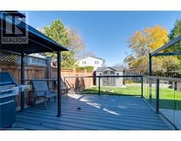 This stunning 2-storey home in Milton is truly move-in ready and loaded with high-end upgrades throughout.Step onto the stamped concrete driveway, walkway, and patio, complemented by a composite front porch and deck, two gazebos, and a shedall included. Enjoy outdoor entertaining with a natural gas BBQ hookup (with rotisserie) and relax knowing the epoxy-coated garage floor, steel-insulated garage door, and smart side-mount opener add both function and flair.Inside, you'll find hardwood floors on both levels, fresh paint throughout, and two convenient access points to the fully fenced backyard. The custom kitchen is a chefs dream, featuring granite countertops, pull-out trays, drawer organizers, a lazy Susan with optimized rotation, pot filler above the double oven, and pot lights throughout for a bright, modern feel.Head downstairs to the entertainment-ready basement, boasting a custom bar and entertainment center complete with built-in speakers. Upstairs, the bathroom impresses with a custom double vanity, built-in storage drawers, and elegant finishes.Dont miss your chance to own this beautifully upgraded home in a sought-after Milton neighborhood. Home is *LINKED* Below grade. (id:46441)
