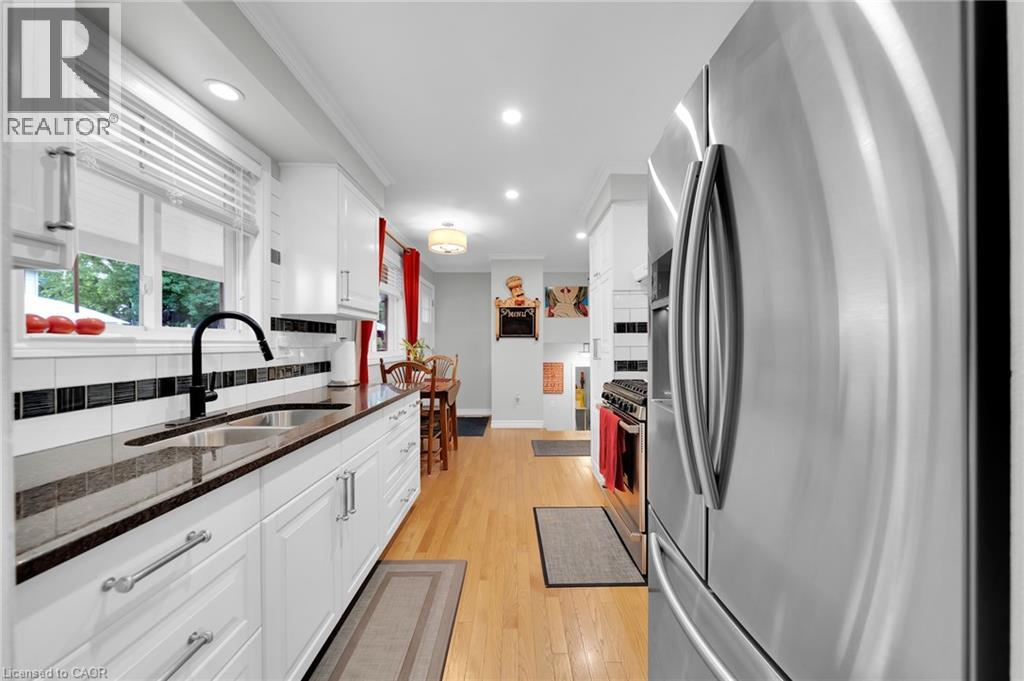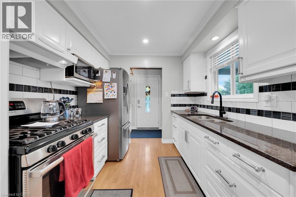Pride of ownership shines in this clean and well-maintained four level back-split in the desirable Heritage Green neighborhood. The Main level features hardwood floors, the beautifully updated kitchen with stainless steel appliances, crown moulding, pot lights, gas stove and granite countertops. Both the front and side entry doors have a coat closet for your convenience. The charming living room and dining area completes the Main level. Make your way to the Upper level where you’ll find the primary bedroom, second bedroom and the lovely four-piece bathroom. The Lower level (above grade) includes the two- piece bathroom and the third and fourth bedrooms, which would serve well as a private office or toy room. You’ll find more living space on the basement level which features a cozy family room with gas fireplace and office area with a handy study nook. Also including the laundry room with storage space and work bench. This fully fenced, 50’ x 110’ property displays a well-kept backyard with mature and healthy gardens, deck, gazebo, garden shed, and enough room for outdoor activities offering privacy for you and your family. The driveway allows for at least two vehicles with one having access to the fully covered carport. This Stoney Creek Mountain location can’t be beat, conveniently nestled within close distance to multiple parks & playgrounds, schools, day cares, public transit, Bruce Trail, conservation areas, shopping centres and super easy highway access. Put this beauty at the top of your list. (id:46441)