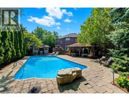 Welcome home to the Heart of Commando Court! This showstopper sits on one of Waterdown's most sought after family friendly court locations. This custom built home is set on a rare oversized lot and features over 3000 square feet of living space above ground with large principle rooms, quality finishes, a stunning backyard oasis and an in-law suite with a private entrance. Upon entry to the home, you will be captivated by the soaring Palladian windows which capture an abundance of natural light illuminating the spacious, elegant living and dining space. The open concept kitchen and family room has been thoughtfully designed and is perfect for entertaining or hosting large family gatherings. The expansive eat-in kitchen is the heart of the home with white cabinetry, granite countertops, centre island and stainless steel appliances. Here you will find double garden doors which open to a composite deck and the amazing outdoor oasis. Adjacent to the kitchen is a unique, sunken family room with a gas fireplace and elegant tray ceilings. Main floor laundry with garage entry, a powder room and large closet round out this floor. The fabulous hardwood staircase leads up to four spacious bedrooms and two five piece baths. The gorgeous, primary retreat offers a custom designed walk-in closet and a luxurious five piece ensuite. The freshly renovated lower level offers an in law suite, thoughtfully designed with a bright sitting room, two bedrooms, a large four piece bath, office space and a kitchen. The kitchen has been crafted with brilliant white cabinetry, stainless steel appliances and quartz countertops. The breathtaking, resort style backyard retreat is sure to impress, with a large in-ground pool, hot tub, custom built gazebo, pool house, deck and sprinkler system all set amongst beautiful mature trees. Close to shopping, dining, schools, parks, the Bruce Trail and convenient highway access. This exceptional turnkey home offers comfort, grandeur and a luxury lifestyle. (id:46441)