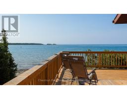 This euphoric waterfront home or cottage boasts over 320 feet of breathtaking Lake Huron shoreline with desirable southern exposure. Cherished by the same family for nearly 40 years, this retreat has been lovingly maintained. Recently updated inside and out by skilled local tradespeople, the pride of ownership shines throughout. Featuring 4 bedrooms and 2 beautifully appointed bathrooms, the spacious primary bedroom includes a king bed and direct access to the elevated wrap-around deck. The well-appointed kitchen with dining space is fully equipped with newer appliances. A wood-burning stove adds warmth and ambiance on chilly evenings. The fully finished lower level features two spacious bedrooms and a modern 3-piece bathroom with laundry. This home is tastefully decorated and furnished with luxurious pieces, being sold fully turn-key with all contents included. The exterior is maintenance-free and adorned with new upper and lower decks, windows and doors. Expansive windows across the front offer stunning lake views, while the large upper wrap-around deck provides ample space to entertain and enjoy the beauty of the surroundings. Easy lake access allows for swimming and kayaking, with ocean-like views that will take your breath away. The property also includes a large 24 x 36 insulated garage/shop and 8 x 12 bunkie. If you're seeking peaceful privacy, this home is perfect. Simply bring your groceries and immerse yourself in luxurious tranquility. (id:46441)