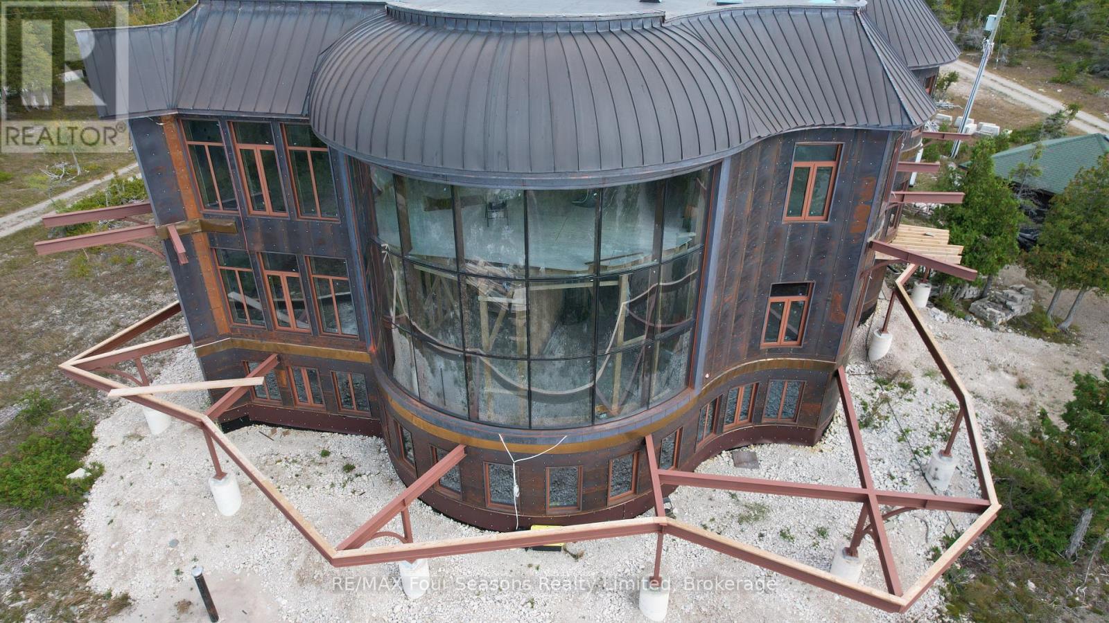 Welcome to a once-in-a-lifetime opportunity on the Northern Bruce Peninsula just minutes from the charming village of Tobermory and the gateway to Fathom Five National Marine Park. Perched along the rugged shoreline of Dorcas Bay, this awe-inspiring "Corten Steel" residence trimmed in brass and copper accents, spans over 6,000 square feet of cutting-edge architectural design, awaiting your final vision. If you are unaware of Corten Steel, check it out online. This is structured to last! Step inside and discover the bones of a technological marvel. Designed with a high-tech interior infrastructure, the home is prepped for next-gen automation, integrated security, and luxury creature comforts. Floor-to-ceiling custom curved glass windows command panoramic views of Lake Huron's turquoise waters, flooding the main living areas with natural light and offering a front-row seat to stunning sunsets. The layout is bold and dynamic. Multiple levels of living space flow organically, offering private zones for bedrooms, studio space, or future home theatre installations. Expansive cantilevered decks are partially framed in and ready for custom finishing ideal for outdoor lounging or elevated entertaining. The property itself is over an acre of coastal landscape, with direct water access via a private boardwalk-style path leading to the rocky shoreline perfect for kayaking, paddleboarding, or sunbathing on limestone shelves. This is not just a home; it's a conversation piece, a legacy build, and a canvas for your ultimate dream retreat. Whether you're seeking a luxurious family compound, a high-end rental investment, or a future-forward escape from the ordinary, 794 Dorcas Bay Road offers unlimited potential. Note: The home is being sold as-is/where is, unfinished, presenting an extraordinary opportunity for the buyer to complete the vision with their own style, materials, and finishes. Plumbed for 5 bathrooms (3+2). (id:46441)