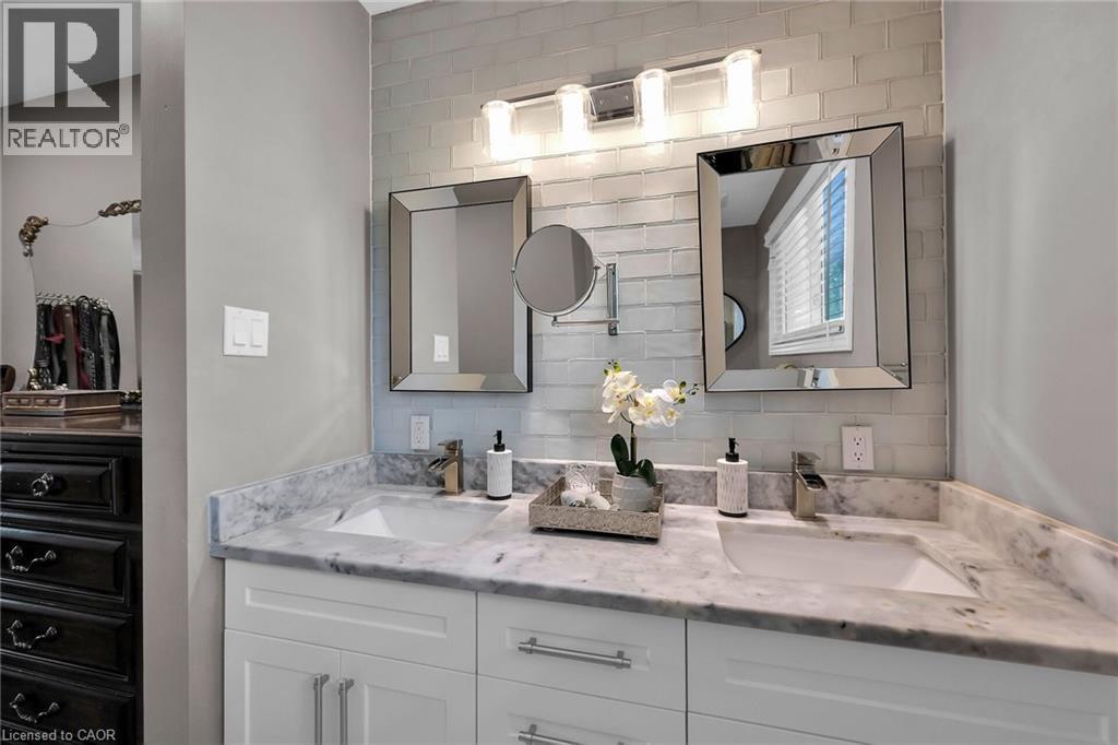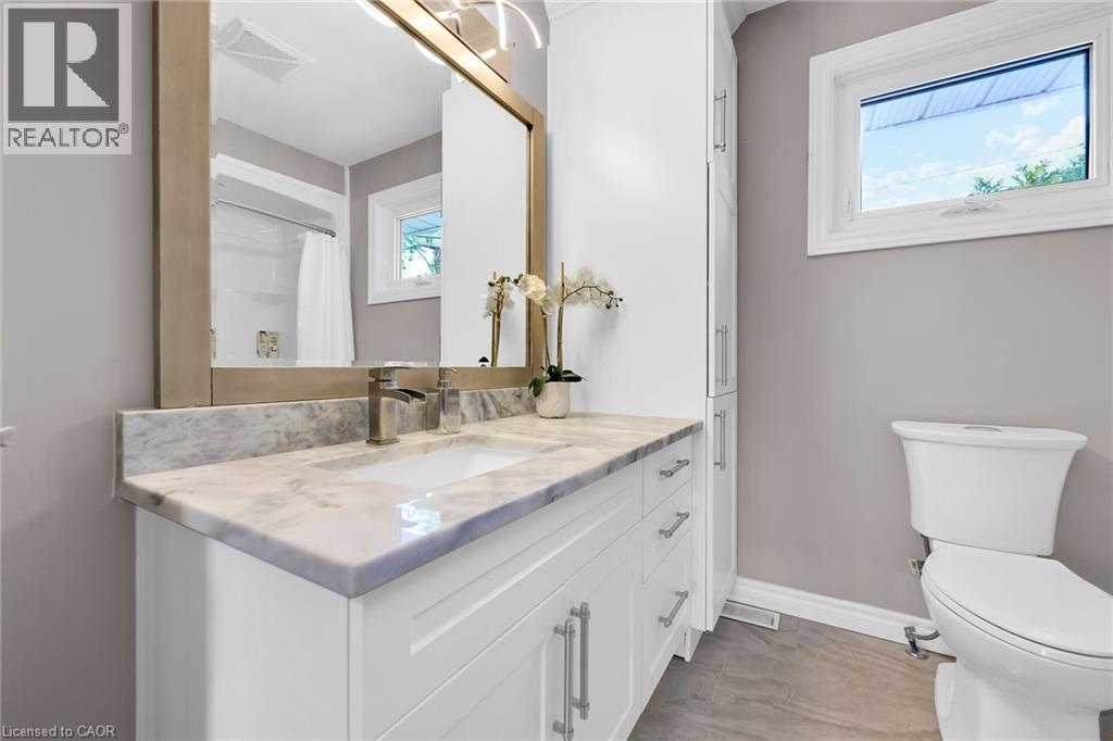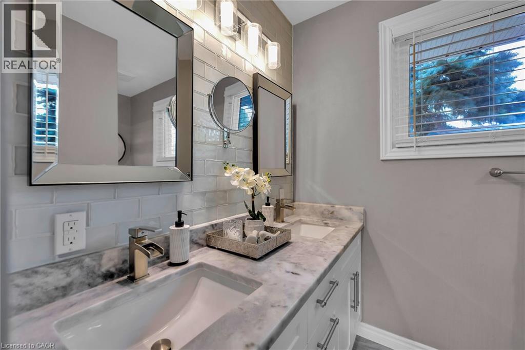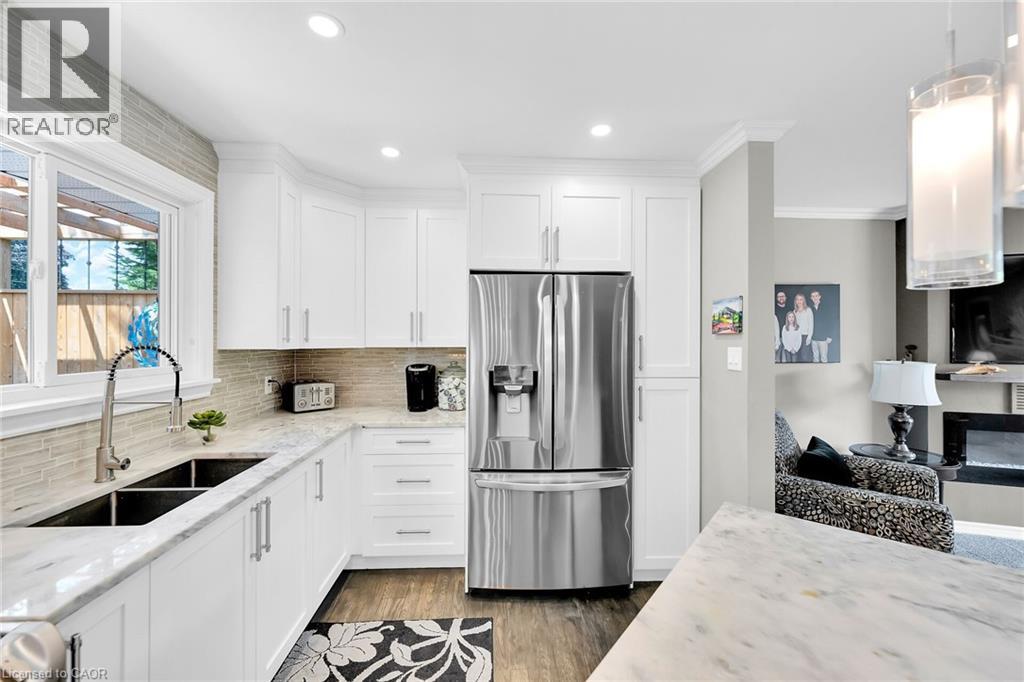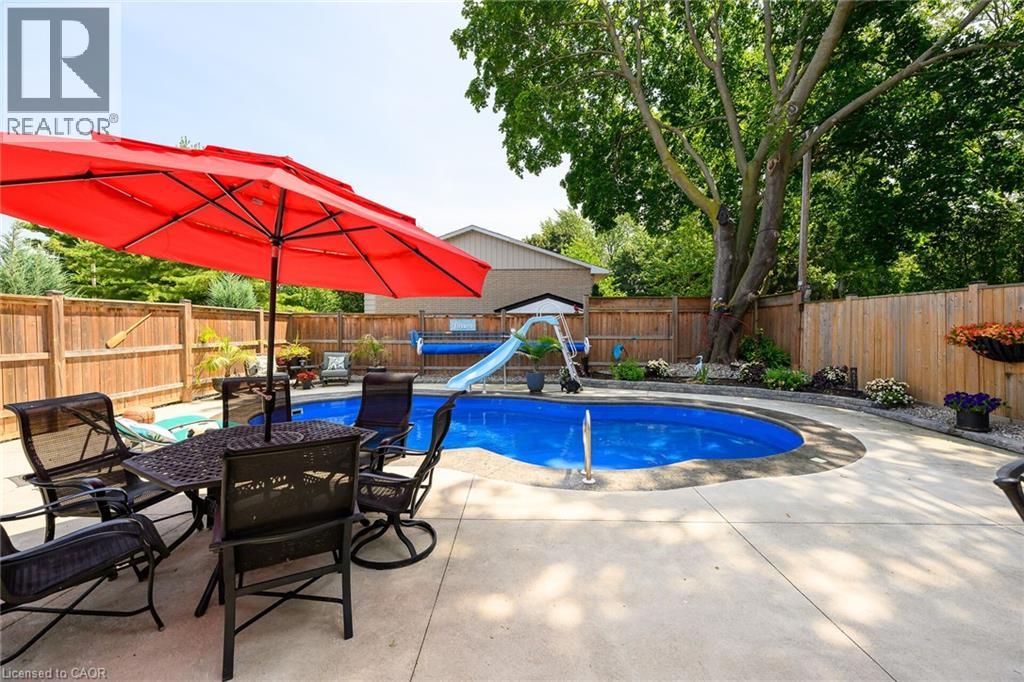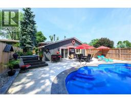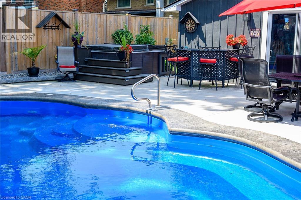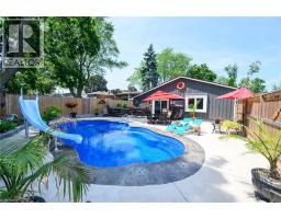 LAKESIDE LIVING! Just around the corner from the waterfront park. Beautifully updated throughout with open concept design. Set on large property with manicured grounds. Two large, paved driveways (2022), inground saltwater heated pool (new 2022), hot tub with resort style backyard Oasis! Chef's kitchen (new 2021) with island & appliances. Main floor family room open to kitchen with large bay window & glass doors leading to very private outdoor dining area. Primary bedroom with walk-in closet. 4PC ensuite bath (new 2020). Bright & spacious lower-level rec room with oversized windows, wet bar, additional bedroom & full bath, laundry room with washer/dryer (new 2020). Inside entry to fabulous 2.5 car garage/man cave with wood stove & epoxy floor. OTHER FEATURES INCLUDE: 200 amp service, new roof shingles (fall 2024), new windows 2021, BBQ hut with natural gas hookup. Hot water tank owned (new 2020), garage door opener, central air, central vac. This home is ideally suited for in-law accommodation. Short stroll to waterfront trails, schools & conveniences, 5 minutes from wineries & easy access to QEW. Nothing to do but move in & enjoy your very own resort lifestyle - at home! (id:46441)