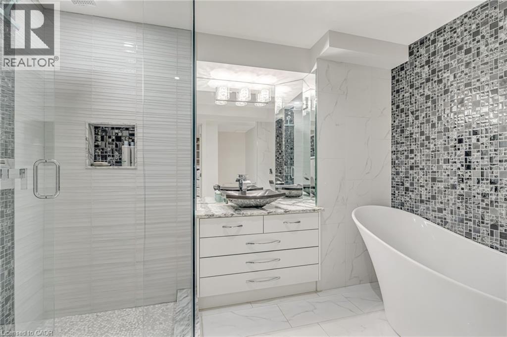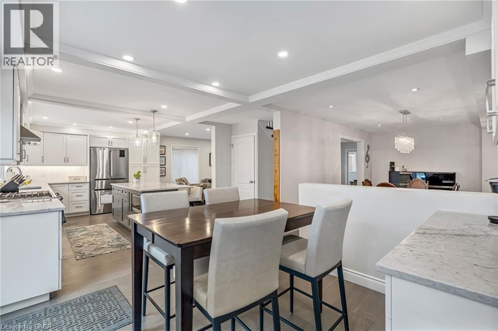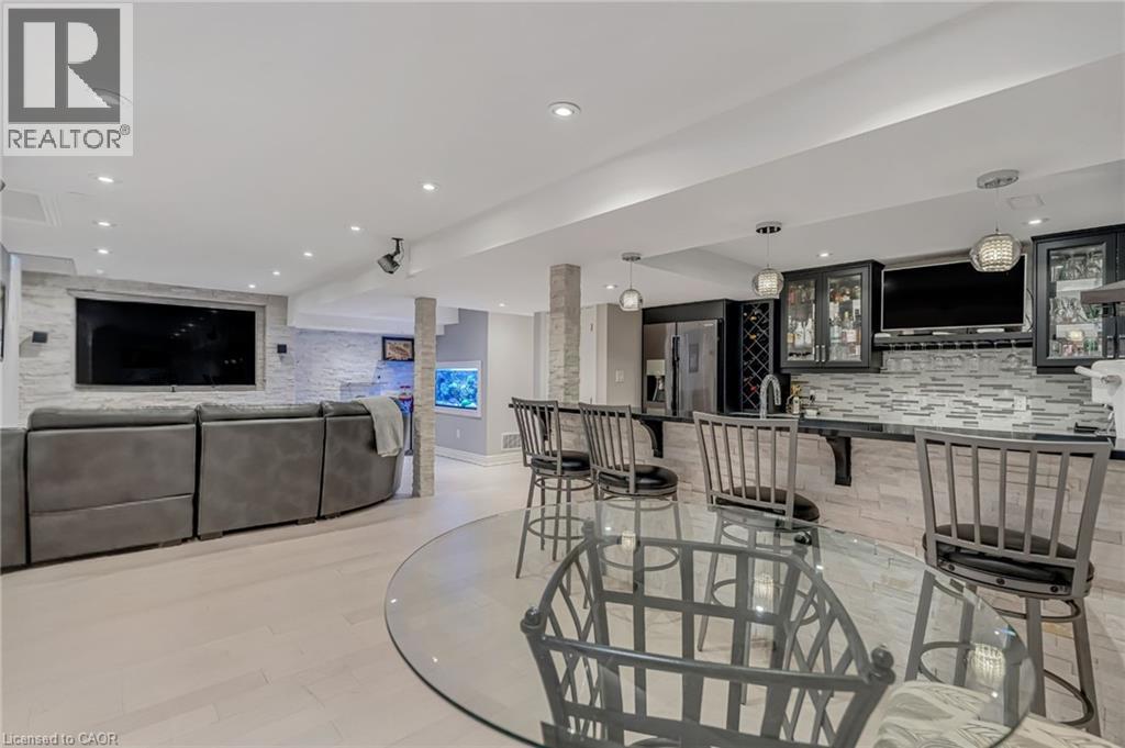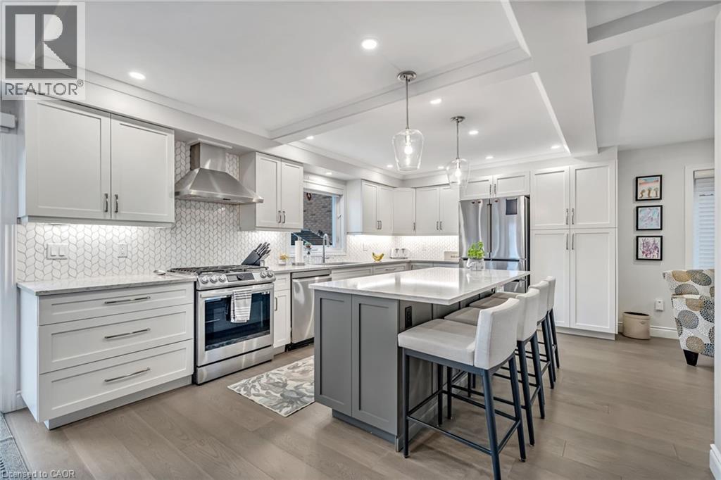 Welcome to this beautifully upgraded 4+1 bedroom, 3+2 bath home offering nearly 2,900 sqft of total finished living space on a generous 45 x 151 ft lot. Designed with versatility and modern living in mind, this property is ideal for growing families or multi-generational living. The newly renovated main floor (2023) features an open concept living and dining space, chef's kitchen with premium stainless steel appliances, including a gas stove and Bosch refrigerator, and ample cabinetry for storage. Convenient inside entry from the double garage adds everyday functionality. The finished basement impresses with a full in-law suite, featuring a custom kitchen/bar with granite countertops, modern black stainless steel appliances, glass display cabinets, and a stylish stone accent wall framing a gas fireplace. Upstairs, the primary suite offers a true retreat with an expanded walk-in closet and a spa-inspired 5-piece ensuite, showcasing his-and-hers sinks, a glass shower, and a luxurious soaker tub. Three additional spacious bedrooms and a full bathroom provide plenty of room for family, guests, or a dedicated home office. Perfectly situated close to Waterdown’s downtown, schools, and local trails, this home combines modern comfort, thoughtful design, and a fantastic location. This is not one to miss! (id:46441)