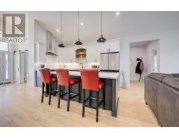 This is a stunning home that was built in 2022 and offers over 3000 sq. ft. of finished living space the open concept design has been constructed and finished with high end quality. Your firstly greeted with a beautiful timber frame front porch, that's complimented by beautiful stone work. As you enter the home, the open concept is very inviting, along with the vaulted ceilings, luxury flooring , 2 massive sliding doors that lead to the timber frame covered rear deck are on each side of the fireplace in the living room. Sit and enjoy the fireplace on those stormy winter days and also enjoy all the natural light that floods in. Main level has primary bedroom with a beautiful en suite bath and large walk in closet. Two additional bedroom and 4pc bath are situated on the opposite of the home. Lower level has a spacious rec room with roughed in for a wet bar, 2 additional bedrooms, 4 pc bath, exercise room, cold cellar and stellar mechanical room. Appliance package included (3 years old) double concrete drive, custom blinds on all windows. This is a beautiful home that you would be proud to call home! (id:46441)