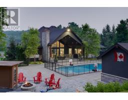 This incredible home seamlessly blends luxury and modern comfort for a dynamic dream lifestyle across more than 10,000 square feet of finished living space. Gourmet kitchen and a butlers pantry, massive living/dining space, soaring ceilings and a floor to ceiling wall of windows that opens to a private outdoor paradise. The primary bedroom is a serene retreat, complete with an electric fireplace and spa-inspired ensuite, huge walk in closet and sliding doors leading to the outdoor living space. Guests or inlaws will appreciate the beautifully finished loft suite and hobbyists will love the massive heated garage and workshop. The fully finished walkout basement is complete with games, gym with an ensuite, sauna, theatre room, 3 bedrooms (with 1 currently being used as a media/office room, and 1 being used as the gym), bathroom and tons of storage. The private resort-like backyard setting features beautifully landscaped grounds, a heated saltwater pool, hot tub, covered porch, wood-burning outdoor fireplace, and a cabana equipped with its own bathroom and wet bar. Enjoy friendly games of basketball, pickleball, or tennis on the multi sports court in the summer then watch it transform into your own private hockey/skating rink once the snow falls. This phenomenal home sits on over 2 acres of private enjoyment in the prestigious enclave of Midhurst and offers the best of indoor and outdoor living, thoughtfully designed for connection, fun and family memories year-round. (id:46441)
