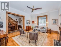 Experience the best of both worlds in this exquisite Heritage Victorian, where historic charm meets modern family life. Located just steps from Exhibition Park, a Guelph landmark with playgrounds, tennis courts, sports field and gorgeous landscaping. A quick walk to downtown Guelph's vibrant core, this home is designed for today's active family.The main living space is a showcase of classic style and contemporary comfort, with soaring 9-foot ceilings and custom Burled Oak woodwork. The chef-inspired Paragon kitchen, equipped with high-end Fisher & Paykel and Miele appliances, is perfect for everything from daily meals to large family gatherings. Recent updates have meticulously preserved the home's character while enhancing its livability.This expansive residence offers incredible versatility with 7 bedrooms and 7 bathrooms. The upper level features a beautifully appointed legal three-bedroom apartment, ideal retreat for an au pair, private space for a teenager, or a suite for visiting relatives. A separate legal one-bedroom suite on the lower level is perfect for in-laws or a tenant, providing comfort and privacy for multi-generational living. Fully equipped with 9 mini-split heat pumps, as well as radiant heating, to keep everyone comfortable year round.Outside, the unique patterned slate roof and charming wrap-around porch add to the home's curb appeal. The peaceful backyard oasis, featuring a fish pond, covered pergola and a lovely perennial garden that blooms in all seasons, is truly a private retreat for family and friends. A detached double garage provides excellent parking and storage solutions. So many living options with this legal triplex, don't miss this one-of-a-kind home built for family life. (id:46441)