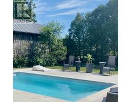 Rare Arkell opportunity offering luxury country living with city convenience - homes in this sought after community rarely come available. Set on a large private lot with a resort-style backyard, this four year old custom home delivers refined modern living designed for both entertaining and everyday comfort. Enjoy summer days by the sparkling saltwater pool, unwind beneath the elegant pergola and appreciate manicured landscaping with in ground sprinkler system, your own private outdoor retreat. Inside, open concept living unfolds beautifully. Just off the gourmet kitchen is a stunning, light filled family room, a true showpiece of this home, featuring a sleek linear fireplace with custom wood mantel, statement lighting and walls of windows that create an almost sunroom like atmosphere. Flooded with natural light and overlooking the backyard, this inviting space is perfect for morning coffee, family gatherings or cozy evenings by the fire. The chef's kitchen impresses with quartz countertops, premium appliances, sleek cabinetry and an oversized island with breakfast bar seating, thoughtfully designed for hosting and daily living. A dramatic staircase becomes an architectural focal point, highlighted by a skylight above and striking staked windows that fill the home with natural light and create an airy, elevated feel from the moment you enter. Upstairs, the primary suite offers a serene retreat with spa inspired ensuite including soaking tub, walk-in glass shower, and double vanity. Three additional bedrooms and a beautifully finished main bath private exceptional comfort for family and guests. The fully finished basement expands your living pace with an additional family area, two bedrooms and a full bathroom, ideal for guests teens or a home office. Located minutes to shopping, schools and parks this rare Arkell property delivers modern luxury, seamless indoor-outdoor living and the peace of country living with city access. (id:46441)