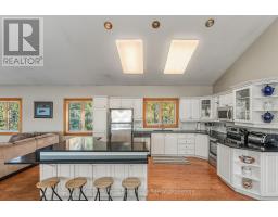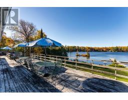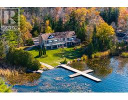 Live your dream on the coveted shores of Gloucester Pool. This rare property offers over 300 feet of pristine waterfront, blending the tranquility of cottage life with the sophistication of year-round luxury living. This four-bedroom, 4,100 sq. ft. residence is designed for both relaxation and entertaining. The open-concept living and dining area features vaulted ceilings, a majestic stone fireplace, and panoramic lake views that set an unforgettable scene. The chef-inspired kitchen boasts stone countertops, an island breakfast bar, and abundant cabinetry, perfectly balancing beauty and functionality. Down the hall, two guest suites open to the lakeside deck, while the primary suite offers an elegant ensuite, walk-in closet, and private walkout-ideal for enjoying morning coffee as the sun rises over the water. Throughout the home, solid wood doors, custom millwork, crown moldings, and marble countertops showcase fine craftsmanship and attention to detail. The walkout lower level expands the living space with a large family and entertainment area, fourth bedroom, additional bath, and convenient access to the garage and storage area. A sauna, wet bar, and wood-burning fireplace create the perfect retreat after a day on the lake or a cozy spot on a winter's evening. Outside, a mix of lush lawn and mature forest ensures peace and privacy. The expansive dock provides ample room for lounging or docking multiple boats, while a private boat launch offers effortless access to Gloucester Pool and the Trent-Severn Waterway-your gateway to endless boating adventures. This is a rare opportunity to own a timeless lakefront retreat where elegance meets natural beauty. Whether as a luxury cottage or year-round residence, this exquisite waterfront home invites you to live the lifestyle you've always imagined. (id:46441)