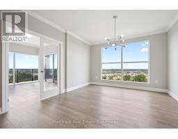 Act Fast! A Rare Gem at a Remarkably Low Price! This expansive 1,650 square foot corner suite boasts one of the top layouts, featuring 2 bedrooms, 2 bathrooms, a spacious den, plus a 133 square foot wrap-around balcony. Built in 2022, this upscale suite blends functionality with high-end design, offering an open-concept floor plan, tall ceilings, abundant natural light, and BREATHTAKING NORTHWEST PANORAMIC VIEWS. The grand Primary easily accommodates a king-size bed and includes a large walk-in closet. The upgraded ensuite offers quartz counters, marble backsplash, heated floors and a glass walk-in shower. The open concept kitchen showcases a grand quartz island breakfast bar with stylish pendants, marble backsplash, stainless steel appliances, and ample storage space. Flowing seamlessly into the bright living and dining areas, you'll feel at home with an upgraded tiled fireplace, elegant cove detailing, and massive windows that create a warm, welcoming environment. The open den/sunroom is framed by upgraded glass French doors and window surround, providing an inspiring workspace or breakfast nook with stunning views. The second bedroom is generously sized, and the main 4-pc bathroom features quartz countertops and a tub. Additional highlights include a spacious in-suite laundry room, underground parking, and a large storage locker. Residents of this exclusive building enjoy premium amenities, including a modern gym, a luxurious Sky Lounge with a kitchen, a billiards room, an outdoor terrace, a golf simulation room with a bar, a fully equipped guest suite, and ample visitor parking. Enjoy a lifestyle of luxury, convenience, and sophistication, with easy access to the 401 and a wealth of dining, shopping, and entertainment options just steps away! With Tower 3 starting in the mid-900K price range, don't miss this rare opportunity. Need more than one parking spot? There are *ADDITIONAL UNDERGROUND PARKING SPOTS FOR SALE* through the builder! (id:46441)