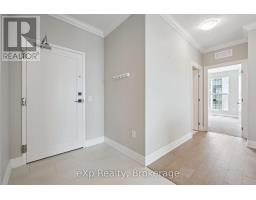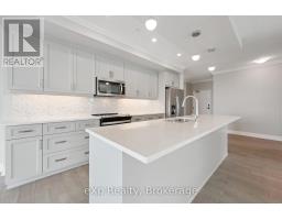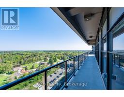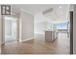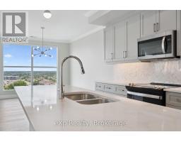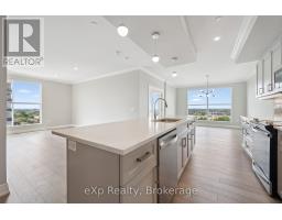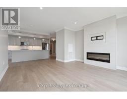 This expansive 1,650 square foot corner suite boasts one of the top layouts, featuring 2 bedrooms, 2 bathrooms, a spacious den, plus a 133 square foot wrap-around balcony. Built in 2022, this upscale suite blends functionality with high-end design, offering an open-concept floor plan, tall ceilings, abundant natural light, and BREATHTAKING NORTHWEST PANORAMIC VIEWS. The grand Primary easily accommodates a king-size bed and includes a large walk-in closet. The upgraded ensuite offers quartz counters, marble backsplash, heated floors and a glass walk-in shower. The open concept kitchen showcases a grand quartz island breakfast bar with stylish pendants, marble backsplash, stainless steel appliances, and ample storage space. Flowing seamlessly into the bright living and dining areas, you'll feel at home with an upgraded tiled fireplace, elegant cove detailing, and massive windows that create a warm, welcoming environment. The open den/sunroom is framed by upgraded glass French doors and window surround, providing an inspiring workspace or breakfast nook with stunning views. The second bedroom is generously sized, and the main 4-pc bathroom features quartz countertops and a tub. Additional highlights include a spacious in-suite laundry room, underground parking, and a large storage locker. Residents of this exclusive building enjoy premium amenities, including a modern gym, a luxurious Sky Lounge with a kitchen, a billiards room, an outdoor terrace, a golf simulation room with a bar, a fully equipped guest suite, and ample visitor parking. Enjoy a lifestyle of luxury, convenience, and sophistication, with easy access to the 401 and a wealth of dining, shopping, and entertainment options just steps away! With Tower 3 starting in the mid-900K price range, don't miss this rare opportunity. Need more than one parking spot? There are *ADDITIONAL UNDERGROUND PARKING SPOTS FOR SALE* through the builder! (id:46441)