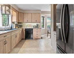 2 Bed (plus a 'flex' space), 2.5 Bath Brick Bungalow on a Beautiful Lot. This well-maintained bungalow combines comfort, functionality, and thoughtful updates throughout. The main level features two inviting bedrooms, 1.5 baths, and bright living spaces with updated flooring and fresh paint. The renovated eat-in kitchen is a standout, showcasing new cabinetry, countertops, sinks, an exterior-vented stove, and a stylish backsplash. The finished lower level adds valuable flexibility with a multi-purpose room complete with a cheater ensuite. Currently used as a bedroom for a shift worker, it can easily function as a home office, hobby room, or guest space. Recent upgrades include a new patio door, several replaced windows for improved efficiency, and a newer sump pump and sandpoint system providing convenient water access for lawns and gardens. The fully fenced backyard offers privacy and plenty of room to relax or entertain. Please note: a home business currently operates in the front two rooms (living and dining), so those areas have been digitally staged in the photos. (id:46441)