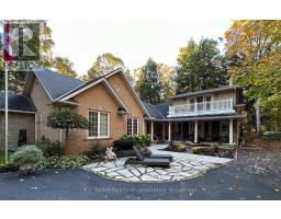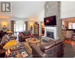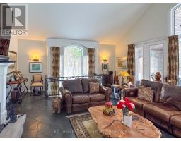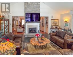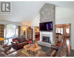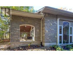 EXECUTIVE RIVERFRONT LIVING. Exceptional custom-built residence privately positioned on 4.98 wooded acres along the Maitland River, offering 230 feet of pristine river frontage just minutes from Goderich and Lake Huron. This remarkable home delivers refined main-floor living with in-floor heat and impeccable craftsmanship throughout. Elegant formal living and dining rooms are complemented by a private den/office and a gourmet kitchen designed for both everyday comfort and entertaining. The showpiece great room features soaring cathedral ceilings, expansive wall-to-wall windows capturing breathtaking river views, and a stunning double-sided cultured-stone fireplace. A main level spacious family room and lower-level rec room provide additional flexibility for family living or hosting guests. The primary suite offers a spa-inspired 5-piece ensuite complete with jacuzzi tub and steam shower - a private retreat within your own home. Outdoors, enjoy the covered rear patio framed by stone pillars overlooking the river - an extraordinary setting for year-round enjoyment. Side screened in room area offers a additional outdoor area to relax and enjoy the peaceful setting. A detached two-car garage with upper studio and an additional single-car garage provide exceptional space for vehicles, hobbies, or creative use. A propane generator backup system ensures peace of mind. A rare offering combining privacy, natural beauty, and executive-level craftsmanship - a truly one-of-a-kind Maitland River estate. (id:46441)