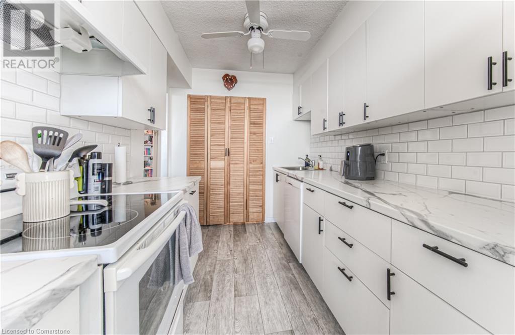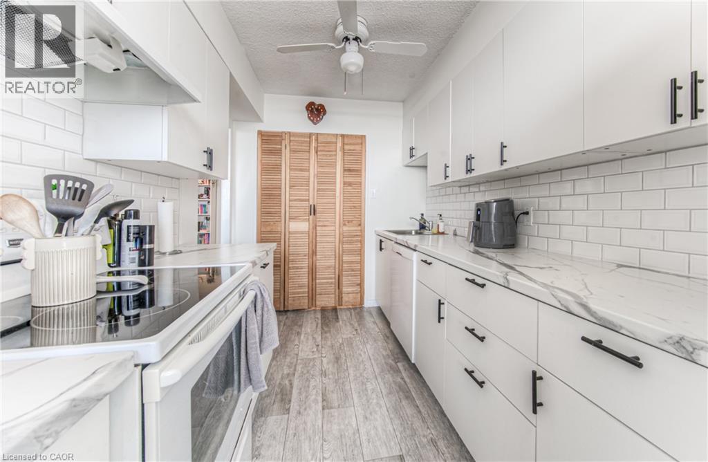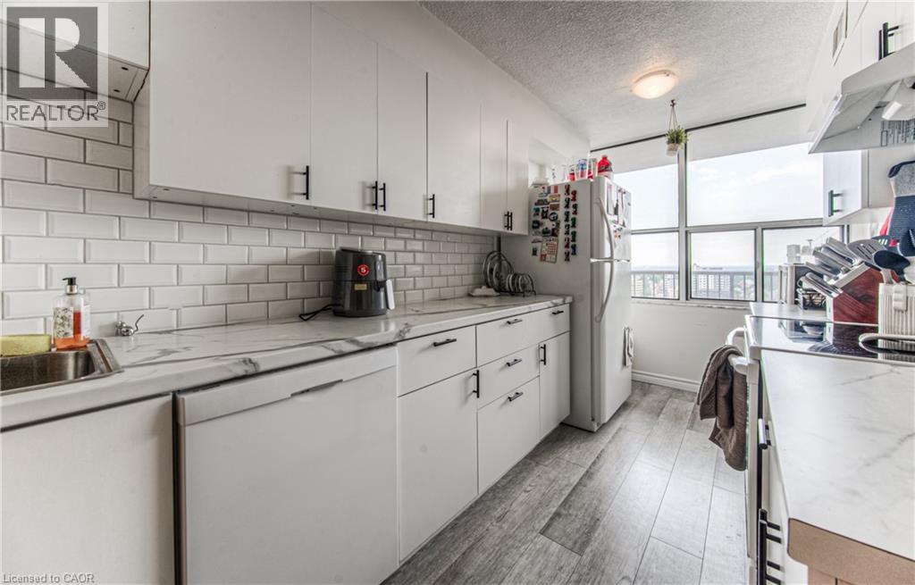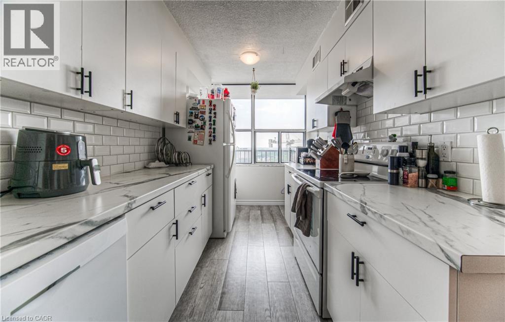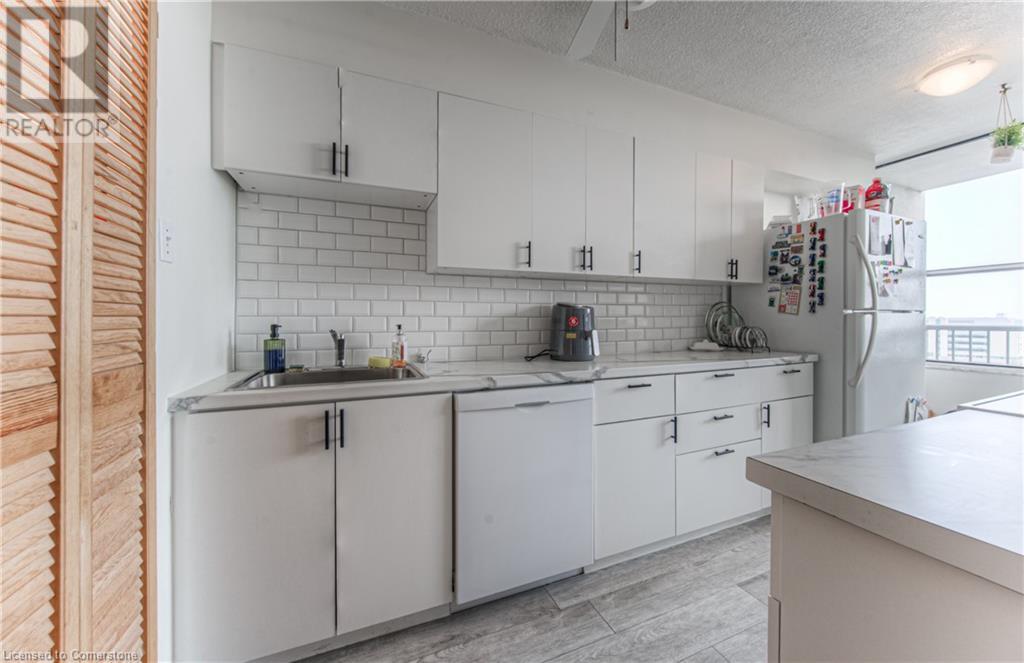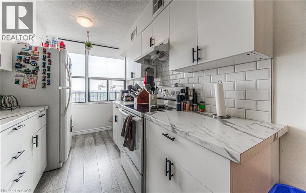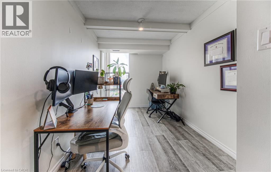 $935.70 MonthlyWelcome to 1504-81 Church Street, a beautifully renovated 2-bedroom plus den, 1.5-bathroom condo offering 1,107 sq. ft. of stylish and functional living space in the heart of Kitchener. Perched on the 15th floor, this unit boasts breathtaking panoramic views that simply can't be matched. Step inside to discover brand new vinyl plank flooring throughout and an updated kitchen featuring modern finishes and ample storage – perfect for cooking and entertaining alike. The spacious layout offers comfortable living and dining areas, generous bedroom sizes and updated bathrooms, including a convenient ensuite. The den gives you the work form home space you need, or a flexible space for guests to use. Enjoy the benefits of underground parking and a private storage locker, along with access to top-notch building amenities: an indoor pool, exercise room, sauna, and party room. Whether you're relaxing at home or hosting guests, this building has everything you need. Ideally located just minutes from downtown Kitchener, public transit, shopping, and dining, this condo is perfect for professionals, downsizers, or anyone looking to enjoy urban convenience in a quiet, well-maintained building. With its premium location, thoughtful upgrades, and unbeatable views, this is a home you don’t want to miss! Reach out and book a showing today. (id:46441)