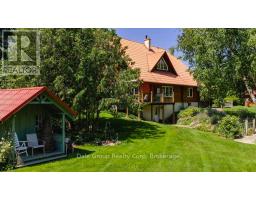 Escape to tranquility without sacrificing convenience in this beautifully crafted 3-4 bedroom, 3 bath log home nestled on 3.36 acres of serene, mature treed property. Perfectly situated just minutes from Goderich Ontario, this property offers the best of both worlds: peaceful privacy and easy access to local amenities. Built in 1996, this warm and inviting home features a spacious open-concept layout with rustic character throughout. Enjoy year-round comfort with efficient in-floor radiant gas heat, ductless heating/cooling units upstairs, and the cozy ambiance of a wood-burning European Kachelofen. The partially finished basement adds versatile living space perfect for a family room, home office, or gym area. Enjoy morning coffee or evening sunsets on the deck overlooking your very own pond with water feature and wildlife, a picturesque centerpiece to the lush landscape. A double car garage provides room for vehicles, and an outdoor shed / workshop with ample space for tools, outdoor gear, or use for a home based business. Whether you are looking for a year-round residence or a secluded retreat, this unique log home offers character, comfort, and privacy in a prime location. This is a rare opportunity. Don't miss out on this first time offered property. (id:46441)