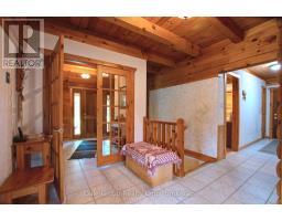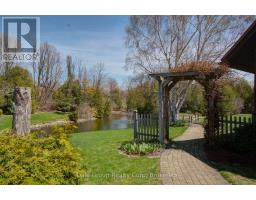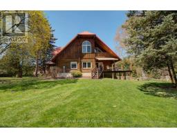 Escape to tranquility without sacrificing convenience in this beautifully crafted 3-4 bedroom, 3 bath log home nestled on 3.36 acres of serene, mature treed property. Perfectly situated just minutes from Goderich Ontario, this property offers the best of both worlds: peaceful privacy and easy access to local amenities. Built in 1996, this warm and inviting home features a spacious open-concept layout with rustic character throughout. Enjoy year-round comfort with efficient in-floor radiant gas heat, ductless heating/cooling units upstairs, and the cozy ambiance of a wood-burning European Kachelofen. The partially finished basement adds versatile living space perfect for a family room, home office, or gym area. Enjoy morning coffee or evening sunsets on the deck overlooking your very own pond with water feature and wildlife, a picturesque centerpiece to the lush landscape. A double car garage provides room for vehicles, and an outdoor shed / workshop with ample space for tools, outdoor gear, or use for a home based business. Whether you are looking for a year-round residence or a secluded retreat, this unique log home offers character, comfort, and privacy in a prime location. This is a rare opportunity. Don't miss out on this first time offered property. (id:46441)