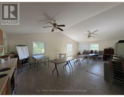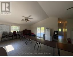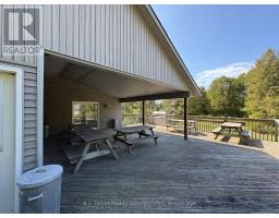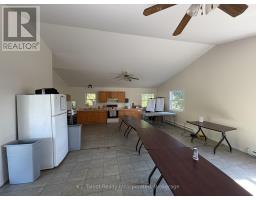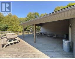 Introducing a unique 13-acre riverfront property close to Goderich, offering picturesque river views and directly adjacent to Lake Huron and to a marina. This serene, mature treed setting features a winterized detached building with significant potential as a cottage, previously utilized as a recreational and community hall. The building's exterior is finished with vinyl siding and aluminum soffit and fascia, complemented by a large covered deck and a dedicated area with built-in BBQs. Inside, the building is insulated and drywalled, boasting a vaulted ceiling with pot lights, and an open-concept great room with an oak kitchenette. Patio doors provide direct access to the covered deck area. The building also includes two 2-piece bathrooms and a utility room equipped with an owned hot water tank, water softener, and pressure tank. The property is serviced by EBB heating, a septic system, and a drilled well. Ample parking is available. Residents will enjoy convenient access to various outdoor activities such as trails, fishing, swimming, canoeing, and kayaking, along with easy access to Goderich's amenities. Please note that this property is accessible by appointment only due to seasonal gated access. (id:46441)