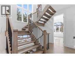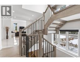 Welcome to 817 King Rd — a custom-built 3,750 sq ft (5,550 sq ft incl basement), 4+1 bedroom, 5-bathroom residence thoughtfully designed for modern family living. A bright, expansive foyer opens to rich hardwood floors, statement lighting, and a striking floating-riser staircase that connects all levels of the home. The main floor office features 12-foot vaulted ceilings and oversized picture windows, while the living room mirrors that dramatic height and is anchored by a warm gas fireplace. The open-concept layout flows seamlessly into a chef-inspired kitchen equipped with a 48-inch stainless steel range, full-size fridge and freezer, pot filler, dual sinks, and waterfall stone surfaces. A glass-enclosed walk-in pantry, custom wine display, and dedicated servery elevate both everyday living and entertaining. Upstairs, the oversized primary suite offers dual walk-in closets with built-ins and a spa-inspired ensuite complete with a soaker tub. Each additional bedroom features vaulted ceilings, walk-in closets, and direct access to an ensuite or Jack & Jill bath. The fully finished lower level adds approximately 1,800 sq ft of bright living space, including a fifth bedroom, full bath, storage room, cold cellar, and open entertaining area with gas fireplace. With potential for a second kitchen, the space is ideal for multi-generational living or an in-law suite. Situated on a rare 75 x 140 ft corner lot with dual street access, the home offers a covered porch with gas fireplace, pool-sized fenced yard with in-ground sprinkler system, double garage, and multi-car driveway. Located in one of Burlington’s most desirable neighbourhoods, you’re a short drive and nine-iron away from Burlington Golf & Country Club, minutes to highway access, and close to the lakefront, downtown restaurants, and waterfront trails. Thoughtful, spacious, and timeless — 817 King Rd is a home you grow into and never out of. RSA. (id:46441)
