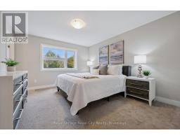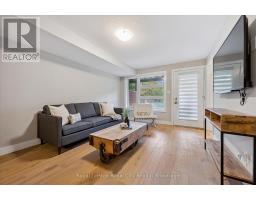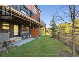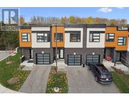 Tucked within an exclusive and private enclave of just a handful of homes, #83-60 Arkell Road is a beautifully appointed modern townhome backing onto a lush, protected forest-offering a rare sense of privacy and a serene natural backdrop that feels worlds away from the city, while still being ideally positioned in Guelph's sought-after South End near top-rated schools, transit, and every essential amenity. Boasting over 2,400 square feet of finished living space, including a walk-out lower level, this thoughtfully designed home features 3 bedrooms, 3.5 bathrooms, and a versatile second-floor den or home office. Extensively upgraded throughout, you'll find luxury vinyl plank flooring, LED pot lighting, and elegant stone surfaces that elevate every space. The open-concept main level is both functional and inviting, offering seamless flow between the kitchen, dining, and living areas, all anchored by a chef-inspired kitchen complete with full-height cabinetry, premium stainless steel appliances, and a striking quartz waterfall island. Step out onto the private deck and take in the peaceful forest views-perfect for entertaining or unwinding. Upstairs, a convenient laundry closet and flexible landing area provide additional functionality, while the spacious primary suite features a beautifully finished ensuite with a glass shower and rain head. Two additional bedrooms share a stylish 4-piece bathroom. The fully finished walk-out basement adds incredible versatility with a large recreation space, full bathroom, and direct access to a covered patio surrounded by nature. Completing the package is a rare third parking space-an added bonus that sets this home apart. An ideal opportunity for a stylish couple, growing family, or investor seeking a high-quality rental in a prime location. (id:46441)