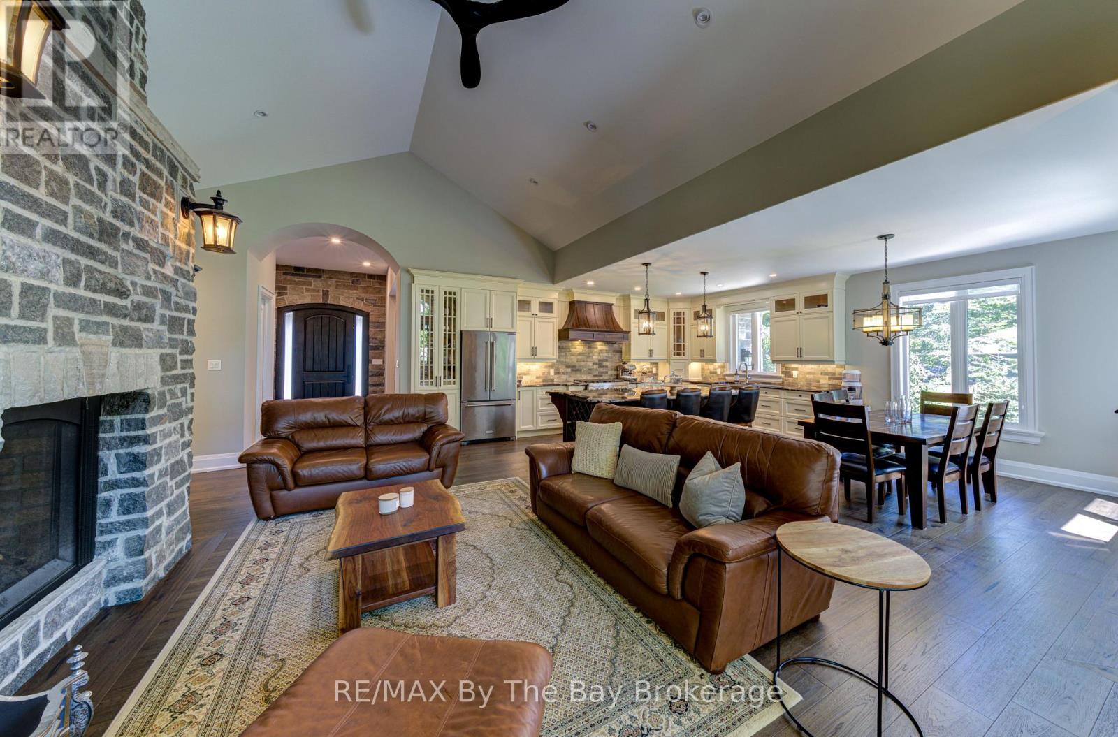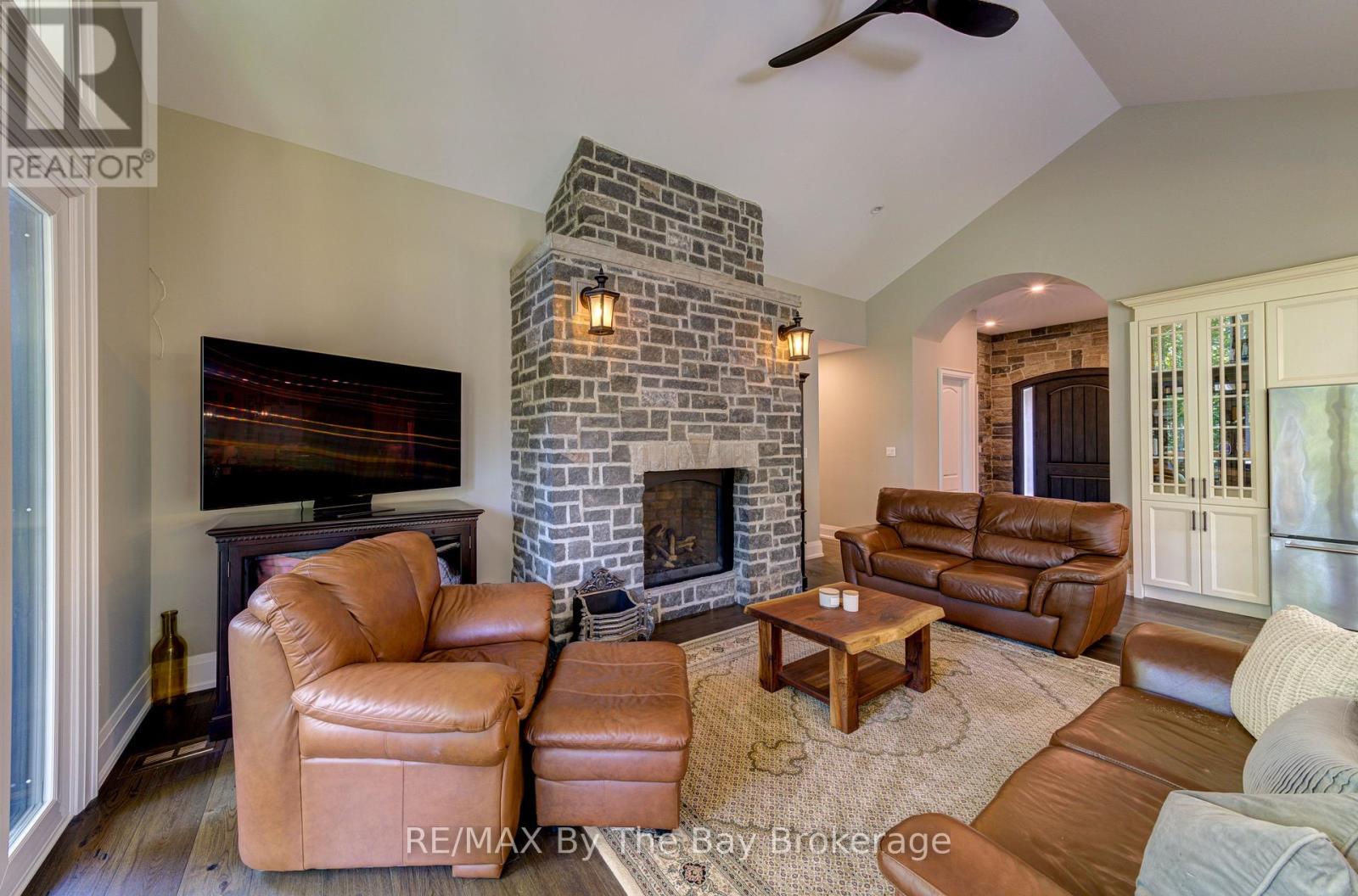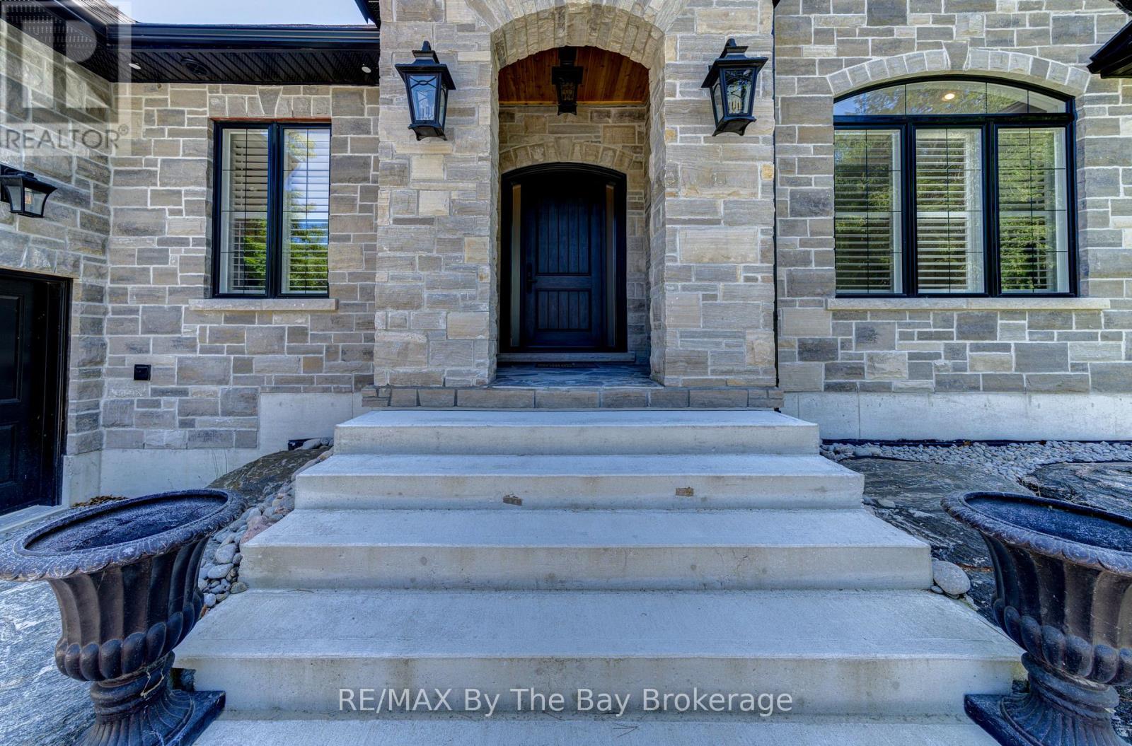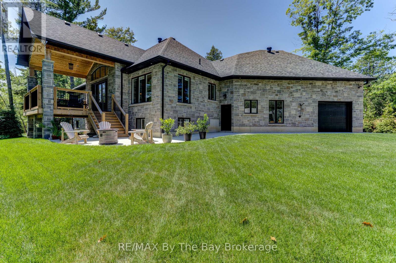 Stunning Almost Beachfront Custom-Built Home At Allenwood Beach! This exquisite property boasts over 3,500 square feet of finished luxury living space. Approximately 900 feet to the pristine sands of the worlds longest freshwater beach. This home is the epitome of coastal living and features a beautiful all-stone facade exterior with a natural stone blend. A 150-foot private driveway provides ample space for parking including an RV plug-in for your recreational vehicle. The grounds are your private oasis with over 500 feet of privacy fencing enclosing a beautifully spruce tree lined yard creating a tranquil retreat. The 950 square foot insulated 2-car garage boasts 13-foot ceilings, 3 insulated garage doors with high lift openers and gas rough-in for a future heater. Once in the home, the Great Room dominates with a soaring cathedral ceiling flooded with natural light. The focal point is an oversized, gas Napoleon fireplace in all natural granite stone veneer finish. French doors provide access to the covered cedar porch and private yard perfect for exclusive outdoor entertaining and relaxation. The heart of the home is the spacious gourmet Kitchen with a seating area at an oversized centre island, copious storage with high end appliances and granite countertops. Nine foot ceilings throughout with tray and vaulted in the bedrooms. The primary suite is a serene retreat. It boasts a spa like 5-piece ensuite with a 2-person rain shower, deep soaker tub, water closet and walk in closet with built in live edge waterfall vanity. An entertainers dream, the fully finished basement includes a theatre room, a versatile large recreation room and 3rd bedroom. Unwind in the Infrared 3-person Sauna Ray sauna. This extraordinary property offers a unique blend of rustic and luxury finishes and ultimate privacy within steps of one the most sought after beaches on the shores of Georgian Bay. Don't miss this opportunity to make this your forever home. (id:46441)