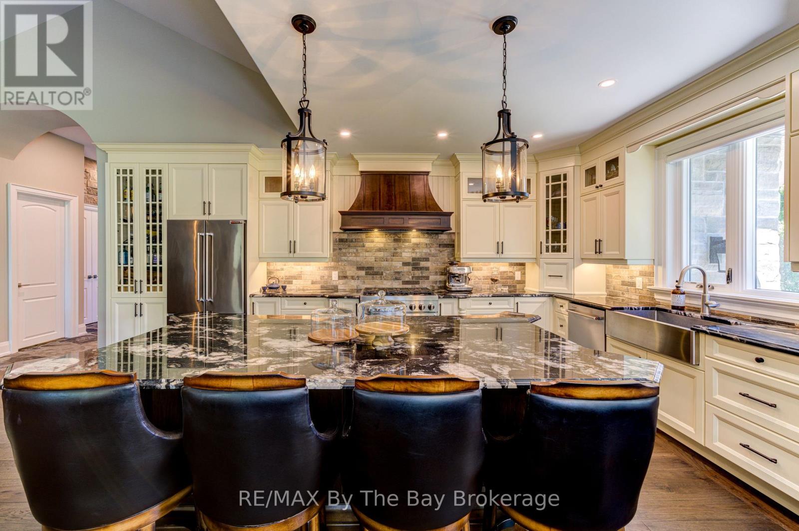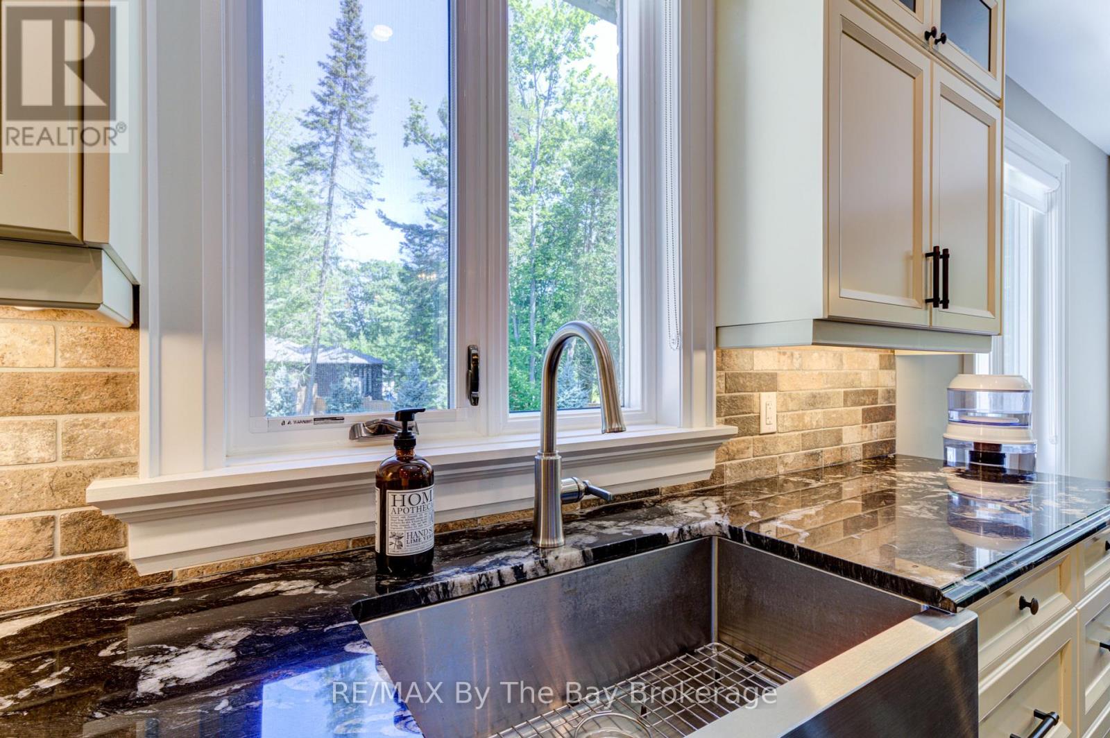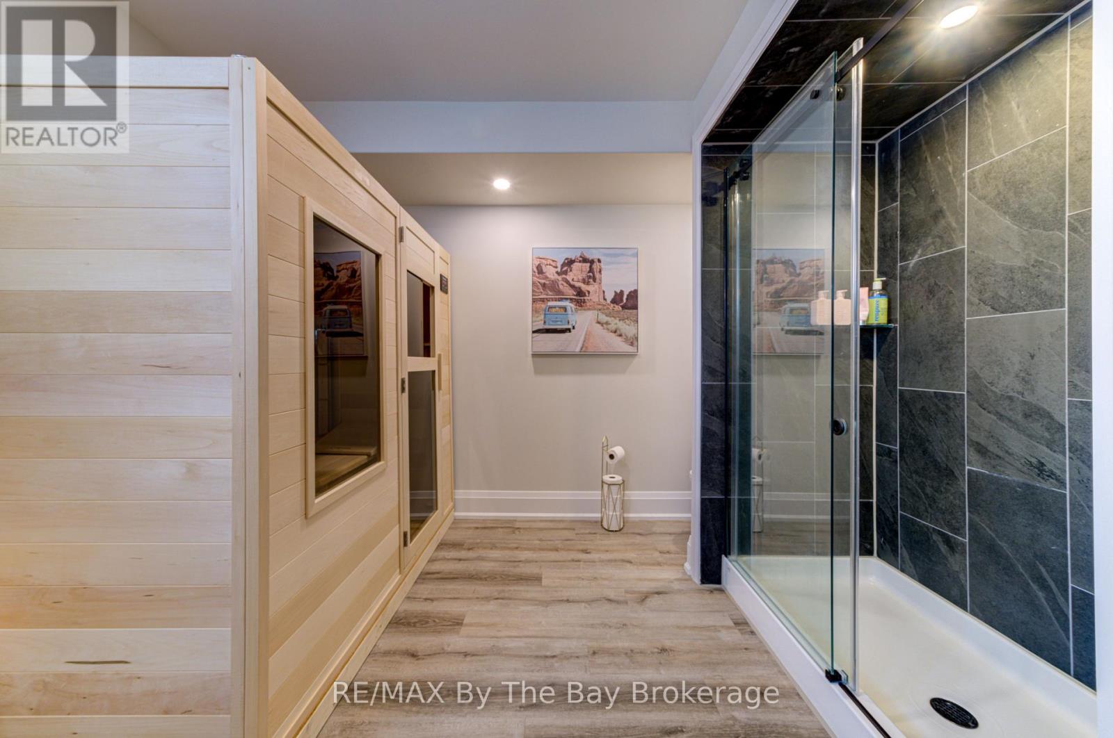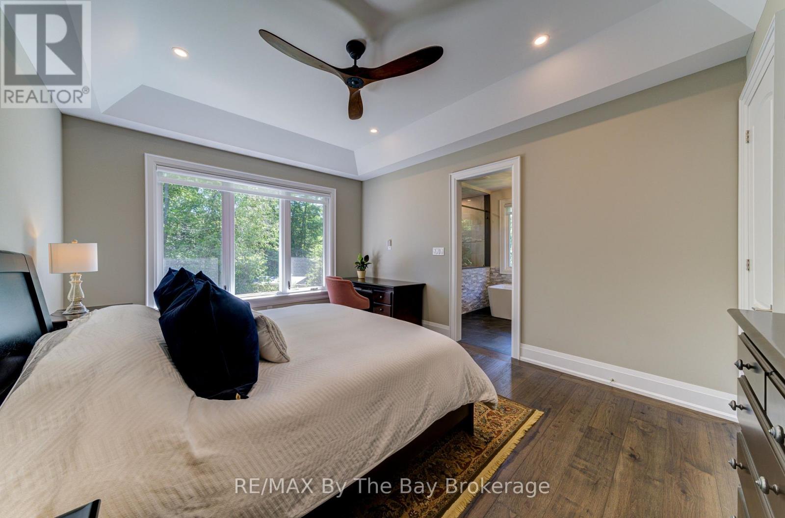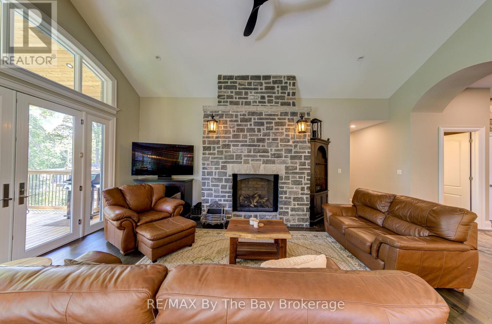 Stunning Almost Beachfront Custom-Built Home At Allenwood Beach! This exquisite property boasts over 3,500 square feet of finished luxury living space. Approximately 900 feet to the pristine sands of the worlds longest freshwater beach. This home is the epitome of coastal living and features a beautiful all-stone facade exterior with a natural stone blend. A 150-foot private driveway provides ample space for parking including an RV plug-in for your recreational vehicle. The grounds are your private oasis with over 500 feet of privacy fencing enclosing a beautifully spruce tree lined yard creating a tranquil retreat. The 950 square foot insulated 2-car garage boasts 13-foot ceilings, 3 insulated garage doors with high lift openers and gas rough-in for a future heater. Once in the home, the Great Room dominates with a soaring cathedral ceiling flooded with natural light. The focal point is an oversized, gas Napoleon fireplace in all natural granite stone veneer finish. French doors provide access to the covered cedar porch and private yard perfect for exclusive outdoor entertaining and relaxation. The heart of the home is the spacious gourmet Kitchen with a seating area at an oversized centre island, copious storage with high end appliances and granite countertops. Nine foot ceilings throughout with tray and vaulted in the bedrooms. The primary suite is a serene retreat. It boasts a spa like 5-piece ensuite with a 2-person rain shower, deep soaker tub, water closet and walk in closet with built in live edge waterfall vanity. An entertainers dream, the fully finished basement includes a theatre room, a versatile large recreation room and 3rd bedroom. Unwind in the Infrared 3-person Sauna Ray sauna. This extraordinary property offers a unique blend of rustic and luxury finishes and ultimate privacy within steps of one the most sought after beaches on the shores of Georgian Bay. Don't miss this opportunity to make this your forever home. (id:46441)