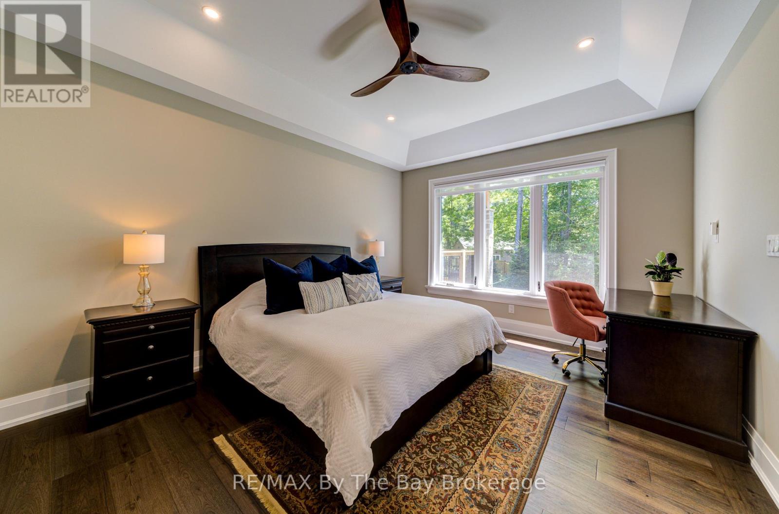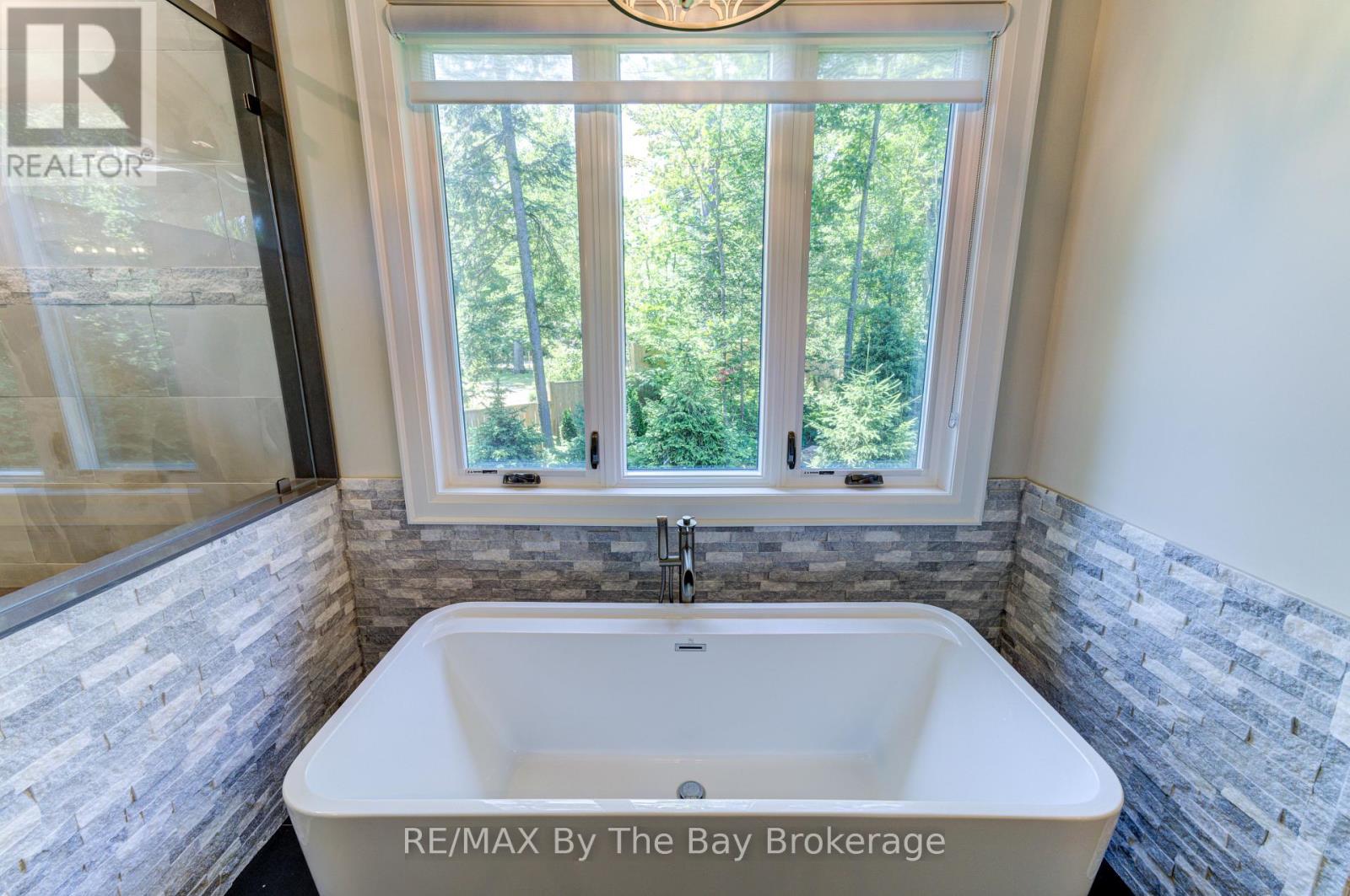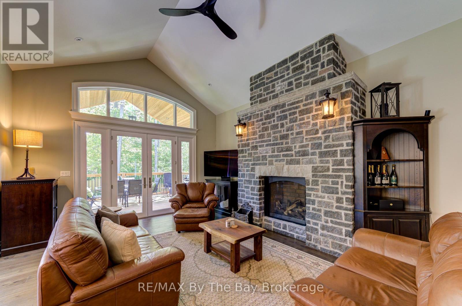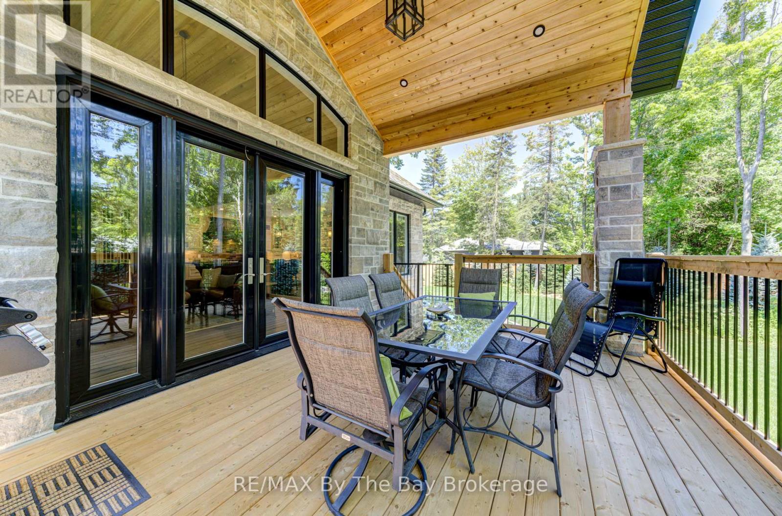 Stunning Almost Beachfront Custom-Built Home At Allenwood Beach! This exquisite property boasts over 3,500 square feet of finished luxury living space. Approximately 900 feet to the pristine sands of the worlds longest freshwater beach. This home is the epitome of coastal living and features a beautiful all-stone facade exterior with a natural stone blend. A 150-foot private driveway provides ample space for parking including an RV plug-in for your recreational vehicle. The grounds are your private oasis with over 500 feet of privacy fencing enclosing a beautifully spruce tree lined yard creating a tranquil retreat. The 950 square foot insulated 2-car garage boasts 13-foot ceilings, 3 insulated garage doors with high lift openers and gas rough-in for a future heater. Once in the home, the Great Room dominates with a soaring cathedral ceiling flooded with natural light. The focal point is an oversized, gas Napoleon fireplace in all natural granite stone veneer finish. French doors provide access to the covered cedar porch and private yard perfect for exclusive outdoor entertaining and relaxation. The heart of the home is the spacious gourmet Kitchen with a seating area at an oversized centre island, copious storage with high end appliances and granite countertops. Nine foot ceilings throughout with tray and vaulted in the bedrooms. The primary suite is a serene retreat. It boasts a spa like 5-piece ensuite with a 2-person rain shower, deep soaker tub, water closet and walk in closet with built in live edge waterfall vanity. An entertainers dream, the fully finished basement includes a theatre room, a versatile large recreation room and 3rd bedroom. Unwind in the Infrared 3-person Sauna Ray sauna. This extraordinary property offers a unique blend of rustic and luxury finishes and ultimate privacy within steps of one the most sought after beaches on the shores of Georgian Bay. Don't miss this opportunity to make this your forever home. (id:46441)