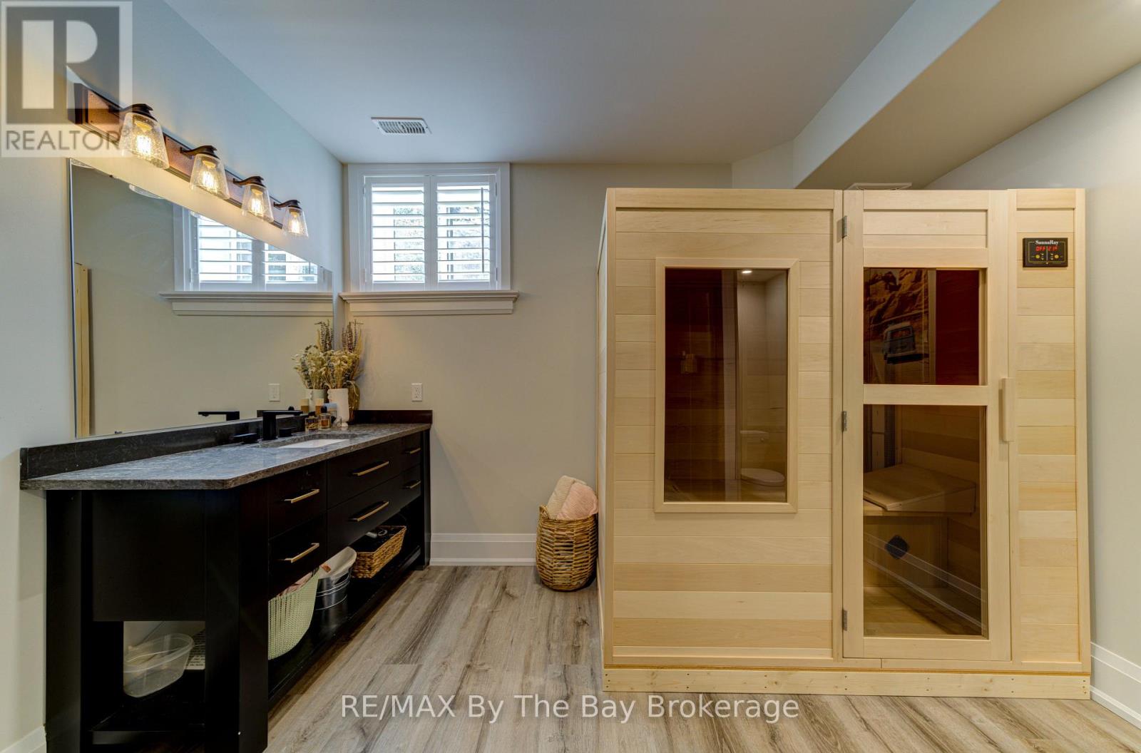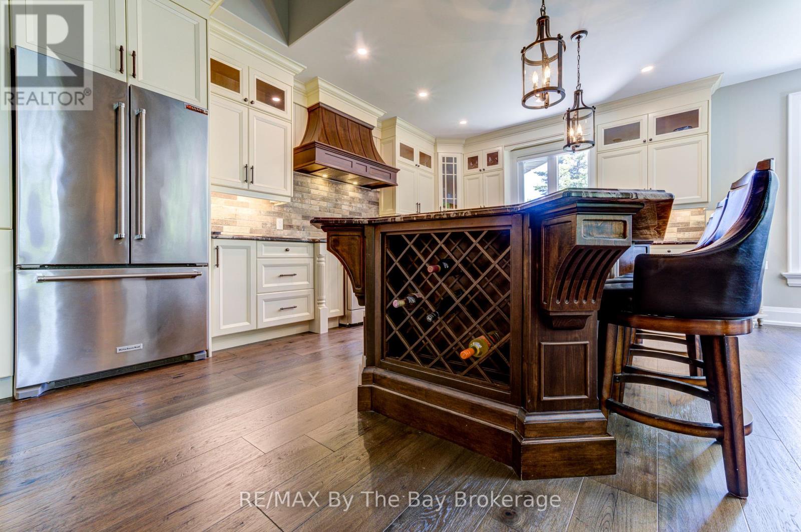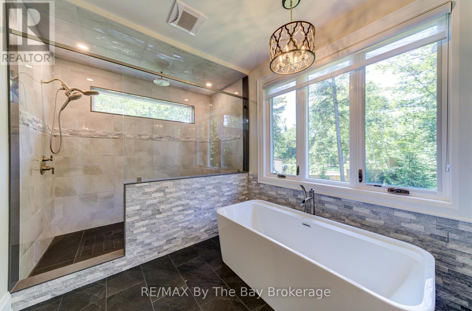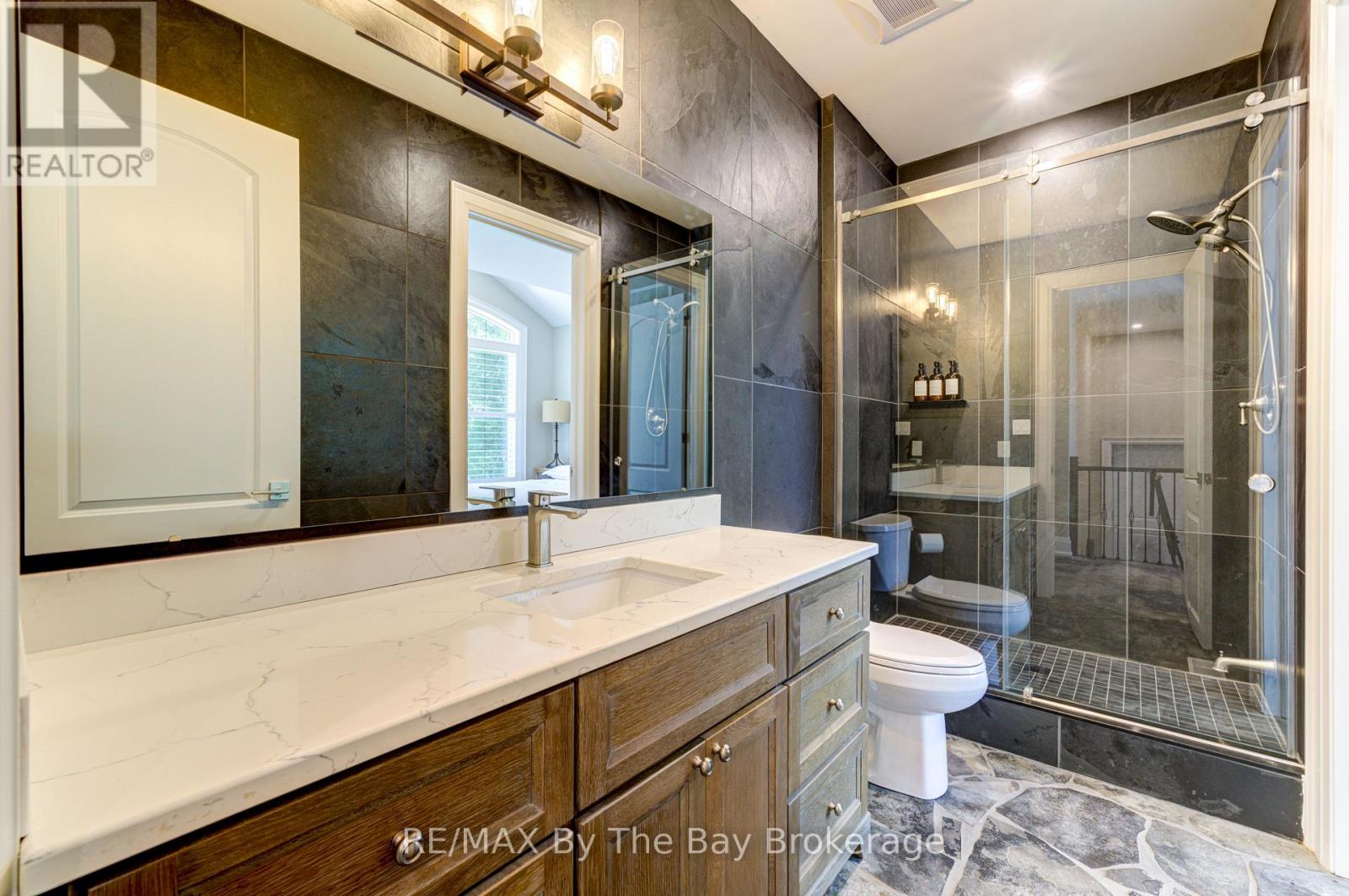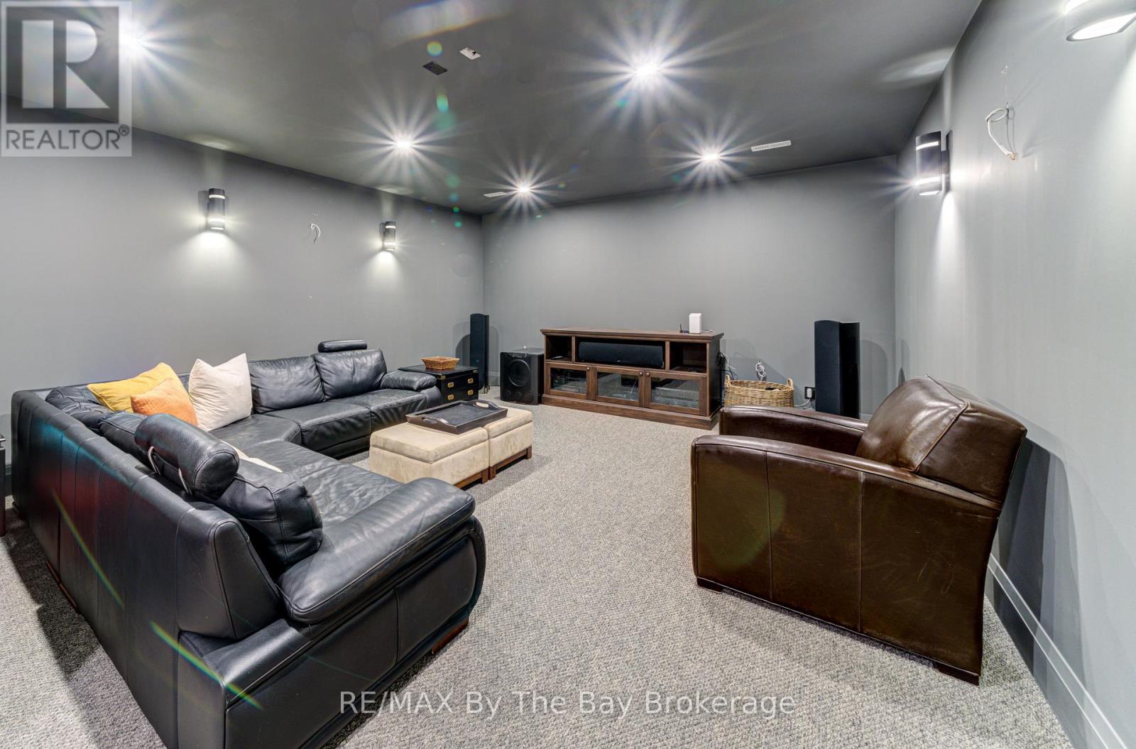Stunning Almost Beachfront Custom-Built Home At Allenwood Beach! This exquisite property boasts over 3,500 square feet of finished luxury living space. Approximately 900 feet to the pristine sands of the worlds longest freshwater beach. This home is the epitome of coastal living and features a beautiful all-stone facade exterior with a natural stone blend. A 150-foot private driveway provides ample space for parking including an RV plug-in for your recreational vehicle. The grounds are your private oasis with over 500 feet of privacy fencing enclosing a beautifully spruce tree lined yard creating a tranquil retreat. The 950 square foot insulated 2-car garage boasts 13-foot ceilings, 3 insulated garage doors with high lift openers and gas rough-in for a future heater. Once in the home, the Great Room dominates with a soaring cathedral ceiling flooded with natural light. The focal point is an oversized, gas Napoleon fireplace in all natural granite stone veneer finish. French doors provide access to the covered cedar porch and private yard perfect for exclusive outdoor entertaining and relaxation. The heart of the home is the spacious gourmet Kitchen with a seating area at an oversized centre island, copious storage with high end appliances and granite countertops. Nine foot ceilings throughout with tray and vaulted in the bedrooms. The primary suite is a serene retreat. It boasts a spa like 5-piece ensuite with a 2-person rain shower, deep soaker tub, water closet and walk in closet with built in live edge waterfall vanity. An entertainers dream, the fully finished basement includes a theatre room, a versatile large recreation room and 3rd bedroom. Unwind in the Infrared 3-person Sauna Ray sauna. This extraordinary property offers a unique blend of rustic and luxury finishes and ultimate privacy within steps of one the most sought after beaches on the shores of Georgian Bay. Don't miss this opportunity to make this your forever home. (id:46441)