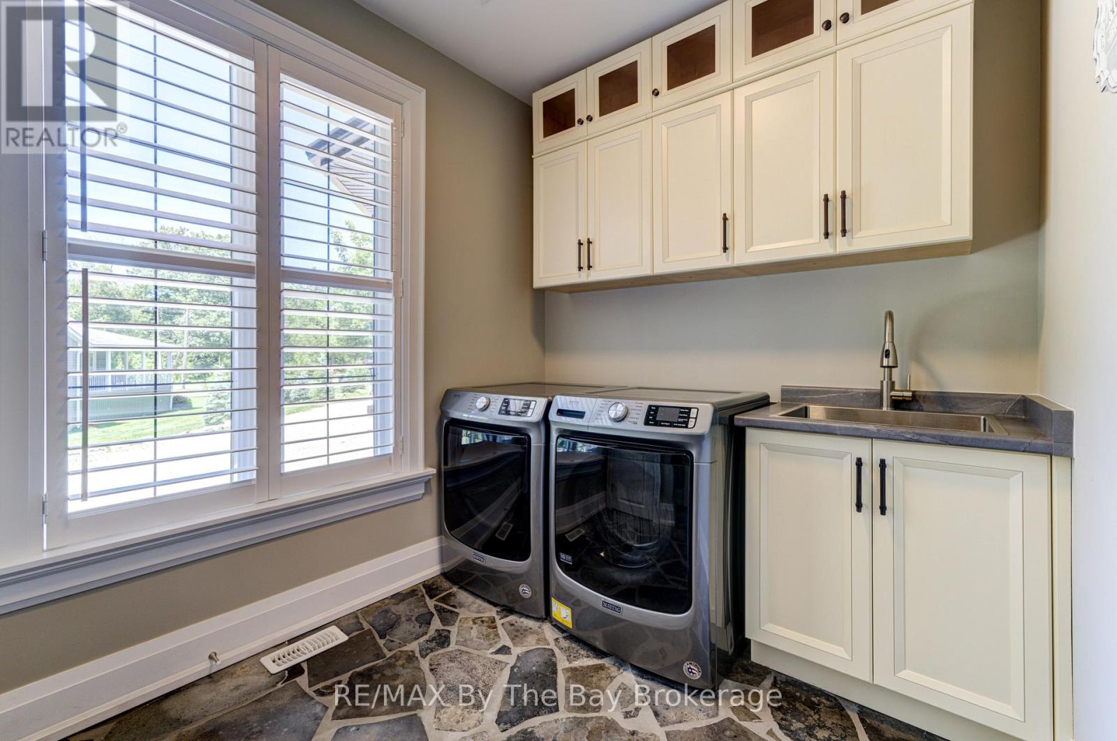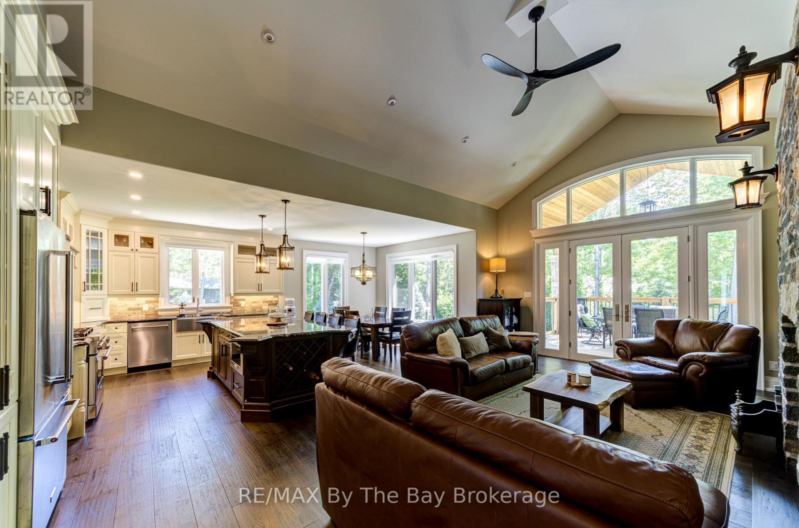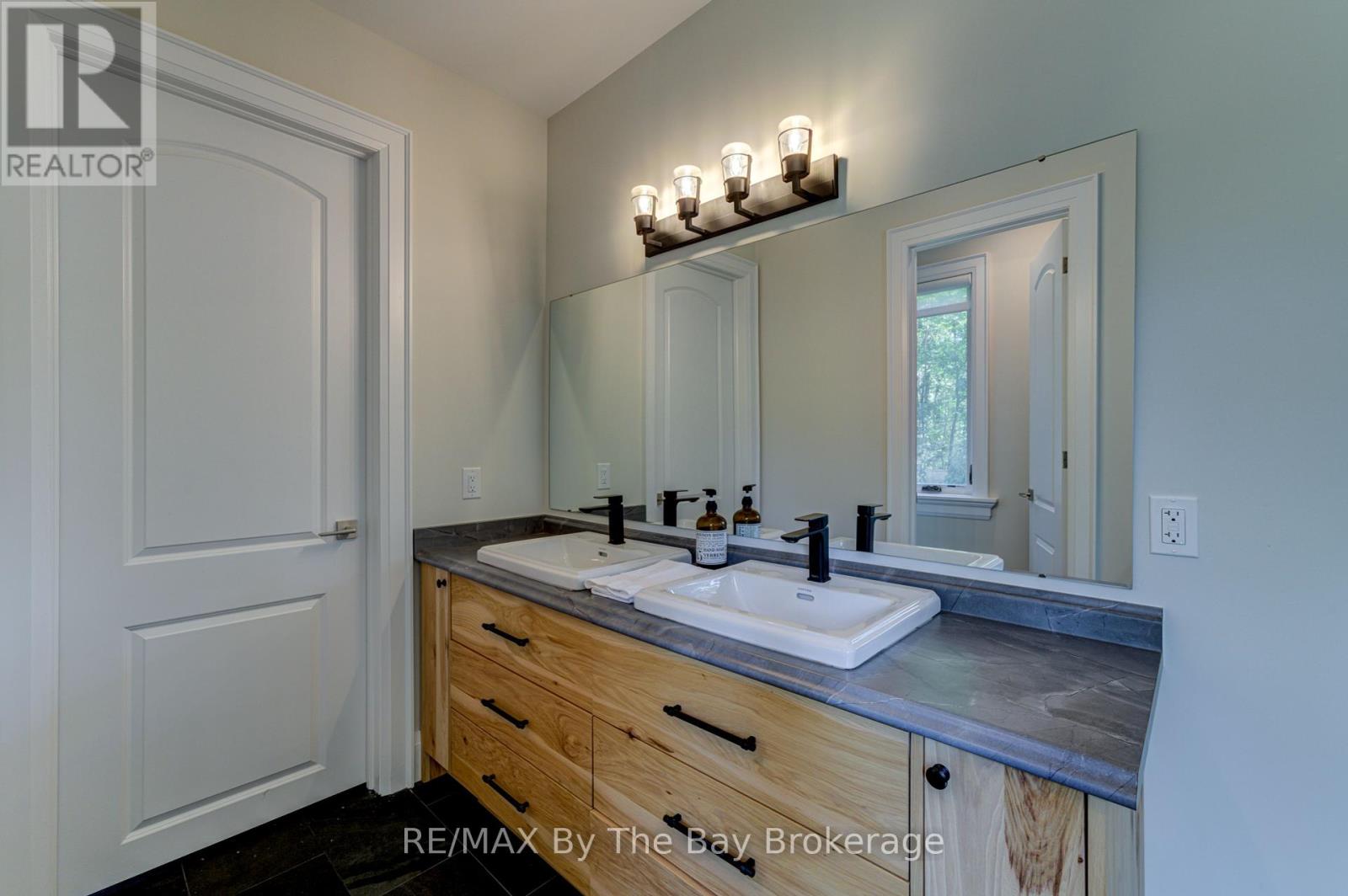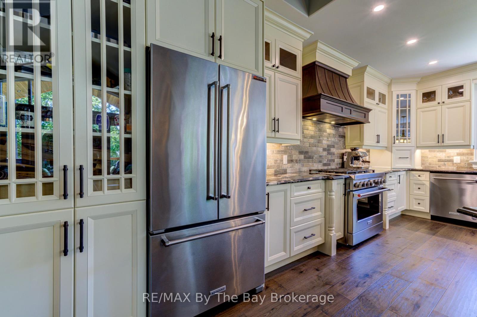 Stunning Almost Beachfront Custom-Built Home At Allenwood Beach! This exquisite property boasts over 3,500 square feet of finished luxury living space. Approximately 900 feet to the pristine sands of the worlds longest freshwater beach. This home is the epitome of coastal living and features a beautiful all-stone facade exterior with a natural stone blend. A 150-foot private driveway provides ample space for parking including an RV plug-in for your recreational vehicle. The grounds are your private oasis with over 500 feet of privacy fencing enclosing a beautifully spruce tree lined yard creating a tranquil retreat. The 950 square foot insulated 2-car garage boasts 13-foot ceilings, 3 insulated garage doors with high lift openers and gas rough-in for a future heater. Once in the home, the Great Room dominates with a soaring cathedral ceiling flooded with natural light. The focal point is an oversized, gas Napoleon fireplace in all natural granite stone veneer finish. French doors provide access to the covered cedar porch and private yard perfect for exclusive outdoor entertaining and relaxation. The heart of the home is the spacious gourmet Kitchen with a seating area at an oversized centre island, copious storage with high end appliances and granite countertops. Nine foot ceilings throughout with tray and vaulted in the bedrooms. The primary suite is a serene retreat. It boasts a spa like 5-piece ensuite with a 2-person rain shower, deep soaker tub, water closet and walk in closet with built in live edge waterfall vanity. An entertainers dream, the fully finished basement includes a theatre room, a versatile large recreation room and 3rd bedroom. Unwind in the Infrared 3-person Sauna Ray sauna. This extraordinary property offers a unique blend of rustic and luxury finishes and ultimate privacy within steps of one the most sought after beaches on the shores of Georgian Bay. Don't miss this opportunity to make this your forever home. (id:46441)