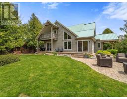 LUXURY. PRIVACY. WATERFRONT. Welcome to a truly distinguished Lake Huron estate set on 1.4 acres across two separately deeded lots, offering an extraordinary blend of prestige, privacy, and shoreline beauty. This impeccably appointed 3-bedroom, 3-bathroom residence showcases upscale finishes, sophisticated design, and geothermal heating and cooling for seamless year-round comfort.Created with entertaining and elevated daily living in mind, the home offers exceptional indoor-outdoor flow with a generous deck, elegant patio, and upper balcony, each designed to take full advantage of the property's breathtaking natural surroundings and unforgettable sunset views. Professionally curated landscaping, mature trees, and a tranquil pond enhance the sense of exclusivity and calm. Adding to the appeal is a heated detached outbuilding with a partial kitchen, perfectly suited for luxury guest accommodations, a private office, wellness studio, or creative space. A private stairway and dedicated golf cart access lead to the lower lakefront lot, where 85 feet of sandy private shoreline and two beautifully finished bunkies create an unmatched waterfront experience.Rarely does a property of this calibre come to market. This is a legacy offering for the discerning buyer seeking a luxurious, private, and truly one-of-a-kind Lake Huron retreat. (id:46441)