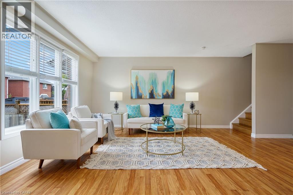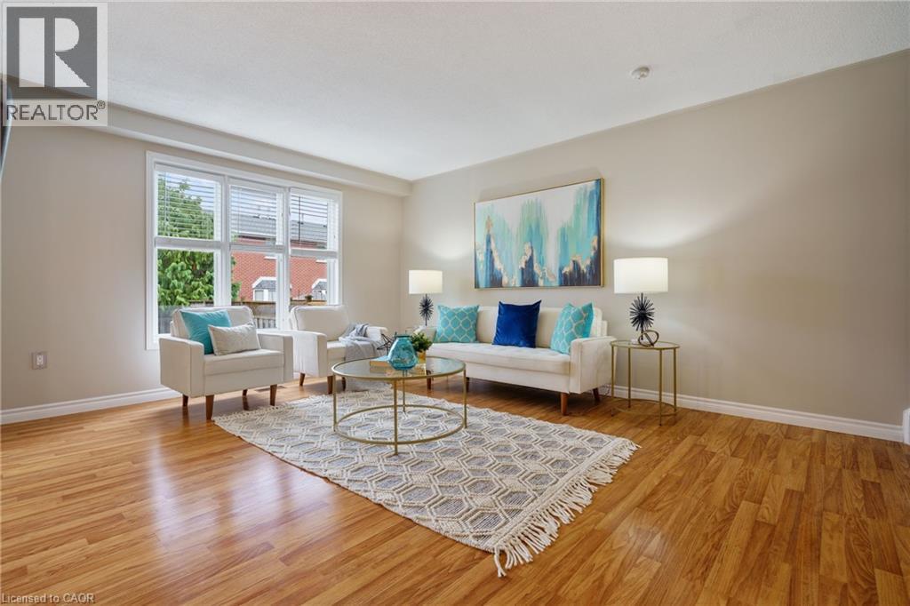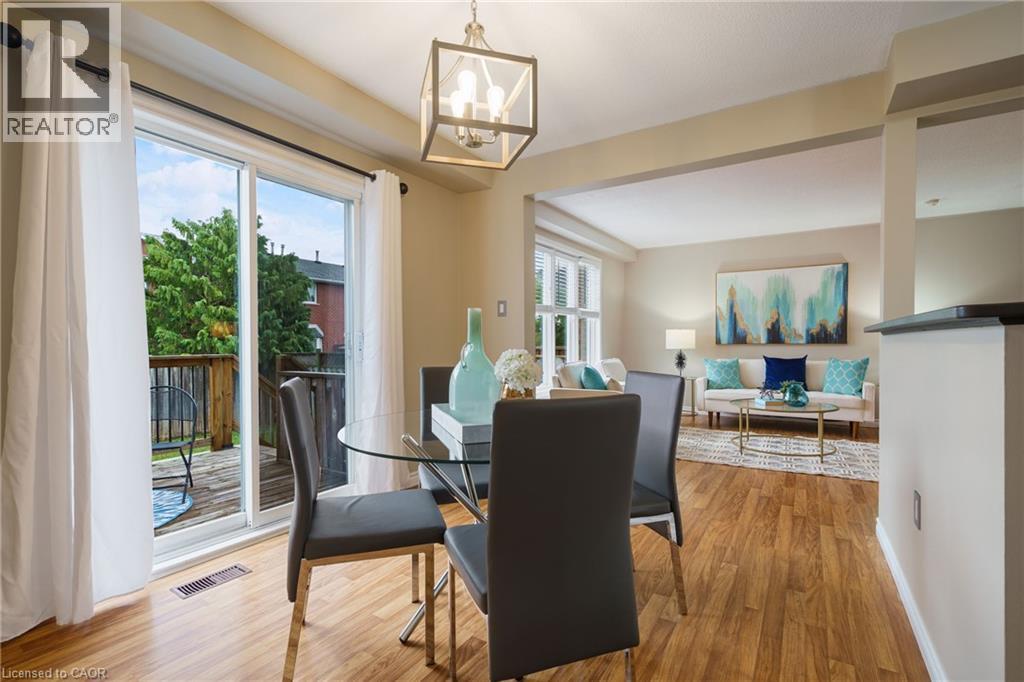 Welcome to 85 Chelsea Crescent in Sherwood Village! This beautifully maintained 3-bedroom, 3-bathroom freehold townhome is located in highly sought-after Lower Stoney Creek and offers a rare double-car garage with inside entry, garage door opener, and double driveway. Inside, you'll find a bright open-concept living and dining area that flows into the updated kitchen, complete with a large breakfast bar—perfect for family time and entertaining. The main floor features newer laminate flooring, and the dining room opens through sliding doors to a lovely two-tier deck with a gas BBQ hookup and a fully fenced backyard. Upstairs, there are two bedrooms plus a full main bath, along with a private principal suite on its own level, featuring a 2-piece bathroom and two large closets. The additional bedrooms also offer generous closet space. The finished lower level provides even more living space with a spacious family room, plenty of storage, and a convenient 3-piece bathroom with a separate shower. The home has been freshly painted, and the exterior showcases well-kept landscaping—making it completely move-in ready. All of this in a quiet, family-friendly location, close to schools, parks, shopping, churches, and with easy access to the highway. (id:46441)