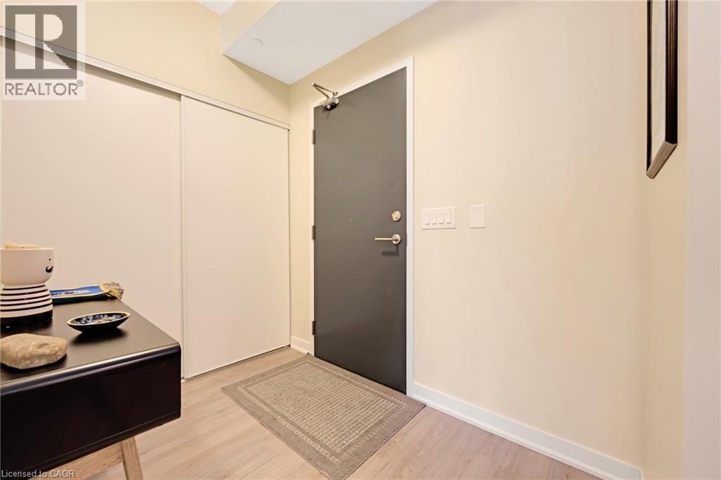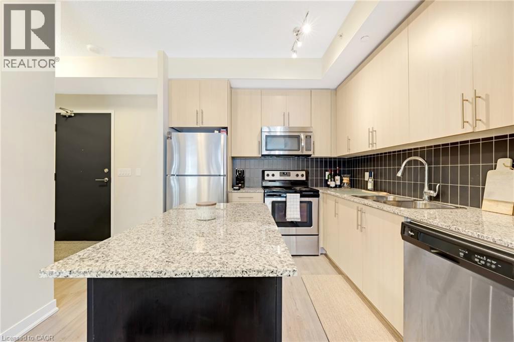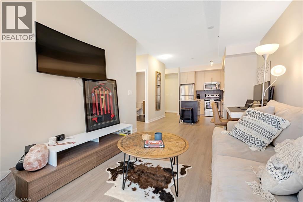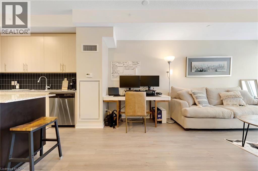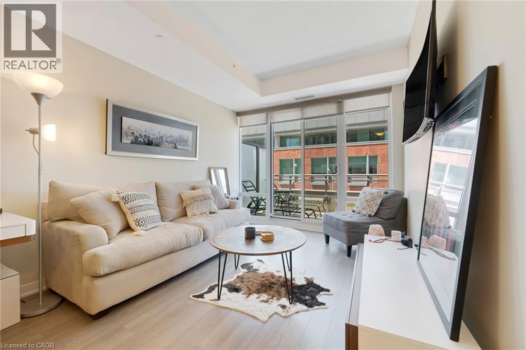 $571.94 MonthlyWelcome to Unit 214 at 85 Duke Street, located in the heart of downtown Kitchener. This bright and modern 1-bedroom, 1-bathroom condo features an open-concept layout combining the kitchen, dining, and living areas, providing a functional space for daily living. The kitchen is equipped with appliances and offers ample counter and storage space. The bedroom includes generous closet space, and the 4-piece bathroom has a clean, contemporary design. Additional features include in-suite laundry and an underground parking space. Residents have access to building amenities such as a community BBQ, concierge, exercise room, gym, and party/meeting room. Situated close to the LRT, restaurants, shopping, and tech offices. (id:46441)