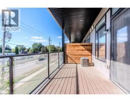 Welcome to The Lofts in Brantford! This immaculate 2-bed, 2-bath condo-loft near the Grand River offers modern, move-in ready living with stylish finishes and soaring ceilings. Perfect for those seeking lower-maintenance living without sacrificing space, it features an open-concept layout, a sleek kitchen with stainless steel appliances, custom cabinetry, and in-suite laundry. Enjoy your morning coffee on the enclosed balcony off the main living area. Includes one reserved parking spot plus ample street parking is nearby for guests. Common amenities include a rooftop patio with gas hookups and a firepit. Minutes to trails, restaurants, shops, and with quick access to Hwy 403. RSA. (id:46441)