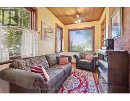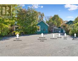3-BDRM HOME + 1-BDRM APARTMENT + SEPARATE 269 SQFT STUDIO/OFFICE + 23'x11' WORKSHOP/GARAGE. Step inside the main house through the covered sitting porch and convenient mudroom, then in to a large foyer with great storage. The main floor layout provides for a spacious kitchen/dining area (with direct access to the backyard deck for BBQing and relaxing), living room, family room with gas fireplace, and separate laundry room. Upstairs provides 3 bedrooms, a 4pc bathroom and cozy sunroom nestled among trees overlooking the front and side yards. Downstairs, an intact original stone basement completely spray foamed/sealed, offering 650+ sqft for storage or craft/workshop area. The attached LEGAL 400 SQFT APARTMENT offers 1-bedroom, a full kitchen combined with living area, a 4pc bathroom with clawfoot tub, and private entrance (with optional interior access to the Main House). Outside, the detached garage houses many opportunities including 162 sqft of storage in the shed space, 23x11 workshop/garage with loft storage, and 269 sqft studio/office space with propane fireplace and 2pc bath perfect for the artist or home-based business such as therapist, accountant, and B&B. A century home with traditional high ceilings throughout, timeless charm and character, an oasis of a backyard with beautiful gardens, mature trees, ornamental ponds, greenhouse, and additional shed on the east side of the home all found on a remarkably private property for an in-town corner lot. Only a 6-9 minute walk to dining, entertainment, shopping, swimming and walking trails around the Muskoka River. Book today to tour this Legal Duplex. (id:46441)