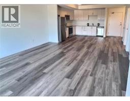 Explore comfortable, modern condo living in the inviting village of Ayr at Piper’s Grove, located at 88 Gibson Street. This well-designed MacLean layout is situated on the top (5th) floor and offers 1 bedroom, 1 bathroom, and a bright, open-concept living space with approximately 885 sq ft. The kitchen, dining, and living area is flooded with natural light from large windows and opens onto a spacious private balcony—perfect for enjoying your morning coffee or unwinding at the end of the day. The stylish kitchen features sleek white cabinetry extended to the ceiling, quartz countertops, a neutral backsplash, and ample prep space. Contemporary lighting over the dining area enhances the modern aesthetic. The primary bedroom offers convenient access to a 4-piece bathroom, creating a comfortable and efficient layout. Additional highlights include luxury vinyl plank flooring throughout, in-suite laundry, wide doorways for wheelchair accessibility, and one covered parking space. Residents enjoy a secure building entrance with intercom system, as well as a welcoming main-level amenity room complete with a kitchenette and washroom—ideal for gatherings or entertaining. Located at the end of Gibson Street, this condo is steps from Centennial Park, the Campbell Trail, the Nith River, Watson Pond, and Jedburgh Dam. Enjoy the charm of Ayr’s downtown core while benefiting from quick access to Highway 401 and a short drive to Cambridge, Kitchener, Brantford, and Woodstock. (id:46441)