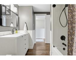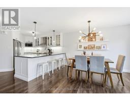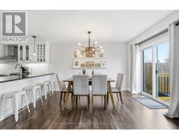Chic and completely move-in ready freehold townhome in Guelph's north end. Spacious, open concept, Reid's Heritage-built 2-storey home with 3 bedrooms and 3 baths. As you enter, you are welcomed into the custom white kitchen with dark granite counters, farmer's sink, stainless steel appliances, under cabinet lighting, and pendulum lighting over a handy breakfast bar. Bright and airy living and dining space, with a sliding door that leads out to the newer deck (2024) and spacious, fully fenced yard (2024). Convenient access to the yard via alleyway from garage as well - ideal for bringing your patio furniture, BBQ or lawn maintenance tools through! There is also an updated main floor 2pc with white vanity, chic gold hardware and shiplap accents. Upstairs are 3 sizeable bedrooms, a 4pc bath with wainscotting, updated white vanity, trendy dark hardware and tub insert. The primary bedroom is enormous and bright, with tons of natural light and dual closets. Downstairs, you will find a fully finished basement, with large rec room, ideal for entertainment/theater room, play area or gym setup. Another recently updated 2pc bath with white vanity and charcoal honeycomb tile flooring offer convenience when entertaining. Engineered hardwood floors through main and upper level, LVP in basement - completely carpet free! All light fixtures have been updated. Furnace and AC are newer as well (2020 and 2021, respectively)! Parking for 3 cars (1 car in garage and 2 tandem in driveway). Ideal starter or young family home, located on a quiet street that is close to neighbourhood parks and walking trails that lead to the beauty and nature at Guelph Lake, or connect to downtown. Easy access to amenities, or to head to KW, Elmira, Fergus or Erin! (id:46441)