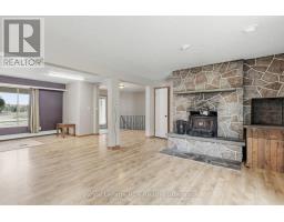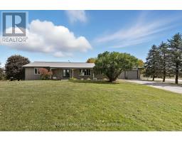 Nestled on over 15 acres of scenic countryside, this 4-bedroom, 4-bath brick bungalow offers more than 2,000 sq. ft. of comfortable living space. The main floor features a spacious living room with hardwood floors and a fireplace, a bright kitchen with stainless steel appliances and scenic views, and two generous bedrooms. The finished basement provides additional bedrooms, a recreation room, and flexible space suitable for a home office, studio, or the potential to add an in-lawsuite. The property includes 3 acres of workable farmland, pastures, a 40 x 170 ft coverall, a chicken barn (currently inactive), gardens, and a private pond. Perfect for a hobby farm, multi-generational living, or simply enjoying the peace and charm of country living. (id:46441)