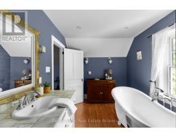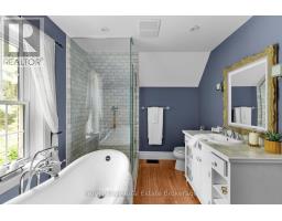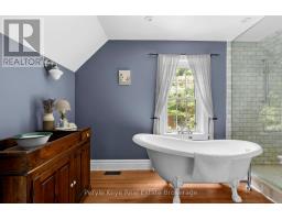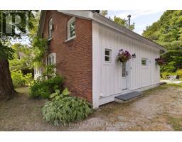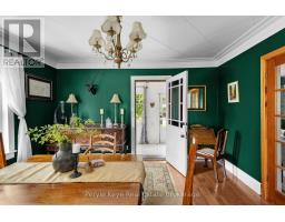 Every so often, something truly special shows up.This is one of those times. Set on a peaceful cul-de-sac, with green space and wooded trails right at your back door, 9 King Street offers a rare balance of character, privacy, and walkability. Coffee downtown in the morning. A swim in the river by afternoon. Life here keeps it all within reach. As you arrive, the brick exterior framed by a towering tree sets the tone. Step inside and the story deepens: warmth, light, and timeless character at every turn. The sleek black kitchen makes its statement with a butcher block countertop, stainless steel appliances, and soft pot lighting. A wood fireplace anchors the living room, surrounded by windows that frame the seasons. Its a place for slow reads and long talks.The dining room invites connection. Evenings begin around the table, then drift to the screened-in porch, where conversation lingers long after the plates are cleared. A Muskoka room offers another place to pause, the perfect spot to rest after tending the gardens. A 2 pc guest bath and laundry complete the main level. Upstairs, a spacious primary bedroom and a comfortable guest room offer quiet retreats. The spa-inspired 4 pc bath features a glass shower a clawfoot tub. Plus, two tucked-away nooks - right now they are closets, but with a little creativity? They could be so much more. Think an entry with a hidden bookcase door or a dormer that turns it into your next favourite room. Inside, the world slows. Outside, it opens up-private, well-treed, and spacious. Picture a bonfire glowing under the stars or afternoons spent unwinding in natures embrace. Here, fires crackle, garden beds bloom, and you feel worlds away from the pace of town. Historic charm matters everyday convenience with full municipal services, natural gas heat, and high-speed internet available. Art, nature, and community-all right here.This is where town meets quiet. Where history meets possibility. And where life-finally-feels like it fits. (id:46441)