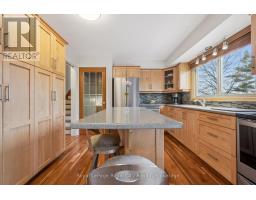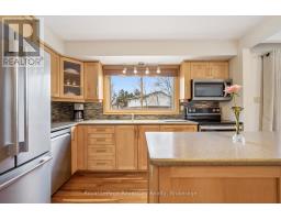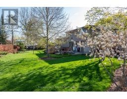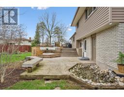 Welcome to this beautifully maintained family home, tucked away on a quiet, tree-lined cul-de-sac in a mature neighbourhood. Set on an oversized pie-shaped lot, the property offers a fully fenced yard and a peaceful setting while still being within walking distance to the University of Guelph, Stone Road Mall, and a variety of excellent restaurants. Commuters will appreciate the easy access to the Hanlon Expressway. Inside, you'll find three spacious bedrooms, a convenient home office, and a bright, finished basement featuring large windows, a cozy stone fireplace with gas insert, and a wet bar perfect for entertaining or relaxing for movie night. The home also features a formal dining room with a sliding patio door that leads directly to the back deck, seamlessly blending indoor and outdoor living. The main bathroom offers a luxurious 5-piece layout, complemented by a practical 2-piece bath on the lower level. Step outside to a backyard designed for relaxation and family enjoyment. With nearly 610 sq. ft. of decking, including a built-in octagonal conversation area, there's plenty of space to gather. A charming pond with a waterfall adds a tranquil touch, creating your own private outdoor retreat. This home has seen numerous recent upgrades, including added attic insulation, a new concrete driveway (2025), a new shingled roof (2018), an updated kitchen with newer appliances, and new siding with added exterior insulation (2022). (id:46441)