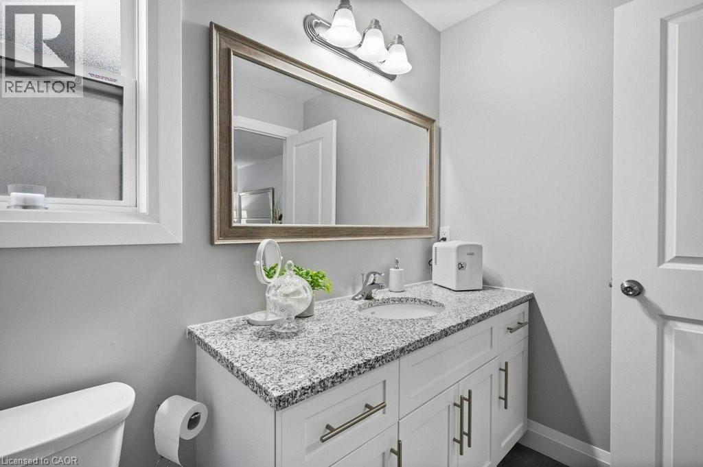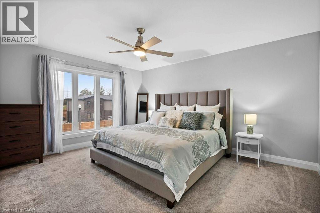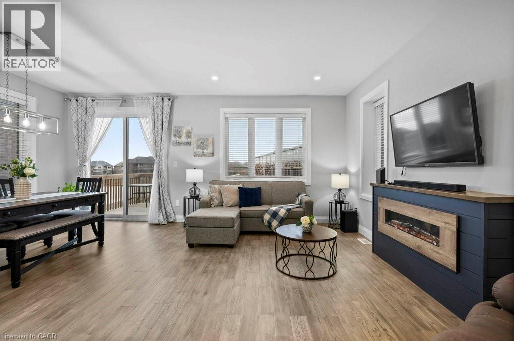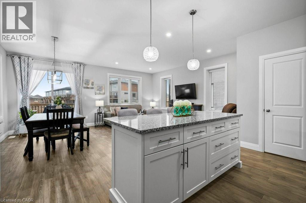 Welcome to this stunning 4-year-old single detached home offering over 2,000 sq. ft. of above-ground living space in one of Kitchener’s most desirable communities. Designed with comfort and elegance in mind, this 3-bedroom, 2.5-bathroom residence features 9 ft ceilings on the main floor, abundant natural light, and a thoughtfully designed layout perfect for modern family living. The gourmet kitchen is a chef’s dream with granite countertops, high-end stainless steel appliances, upgraded lighting, and stylish finishes throughout. The open-concept living area includes an electric fireplace and flows seamlessly to the dining area and deck—ideal for entertaining. Upstairs, a second-floor family room provides extra living space, while the convenient second-floor laundry adds everyday ease. The walkout basement offers endless potential for a future in-law suite or recreation area, and the home’s location on a private, and secure court provides peace of mind. Best of all, this property backs onto a small lake, creating a picturesque backdrop for your daily life. (id:46441)