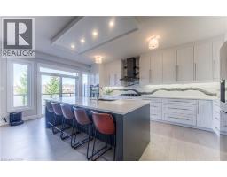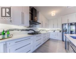 Live on an elite court surrounded by executive homes, with Wetland Way Park as your private backdrop. Set on a premium lot, this modern residence offers nearly 3,900 sq. ft. of finished living space, thoughtfully designed with 9-ft ceilings on both the main and upper levels and a desirable finished walk-out basement. The open-concept main floor features a custom chef’s kitchen with a striking 10-ft island, full-length cabinetry, pots-and-pans drawers with soft-close, and premium finishes—perfect for entertaining at the heart of the home. The kitchen flows seamlessly into the dining and living areas, and extends outdoors to an oversized composite deck, ideal for gatherings with family and friends. Upstairs, discover four spacious bedrooms plus a large family room with feature windows that can double as a home office, cozy library, or even a fifth bedroom. The primary suite overlooks the park and deck, and offers a spa-inspired ensuite along with a walk-in closet featuring built-in organizers. Additional bedrooms are generously sized, filled with natural light, and well-suited for family living. The walk-out basement is a versatile extension of the home—complete with a rec room for relaxing or entertaining, a rough-in for a future wet bar/kitchen, and direct access to the fully fenced backyard. This level also includes a private office/nap room and a den currently converted into a walk-in seasonal wardrobe. Blending privacy, comfort, and modern design, this home offers an exceptional lifestyle in one of Kitchener’s most sought-after neighbourhoods. With its family-friendly community, executive curb appeal, and direct access to nature, it’s the perfect place to call home. (id:46441)