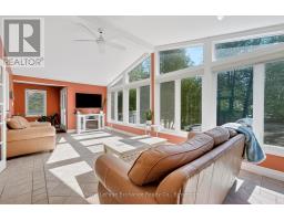 Escape to this sprawling half-acre retreat in the heart of Point Clark, located just steps from the pristine shores of Lake Huron. This versatile property serves perfectly as a permanent family home or a year-round cottage. Peace of mind comes standard with a new septic system (2025) and a new gas forced air furnace (2025). Hobbyists will love the 26' x 22' detached, fully insulated, and heated shop/garage featuring its own dedicated gas heater. Dual street access provides unparalleled parking flexibility for boats, RVs, and trailers. Step through the welcoming foyer which offers convenient double-access to both front and rear yards and a stunning four-season sunroom. This "wow-factor" space is perfect for soaking in the privacy of your mature, treed surroundings. The heart of the home features an open-concept kitchen and living room with soaring vaulted ceilings and a cozy natural gas fireplace, while large sliding glass doors flood this space with natural light. The main level hosts a 4-piece bathroom and three bedrooms, including a primary suite with a private walk-out balcony and ample closet space. The lower level adds even more value with a walk-out to the backyard, a second gas fireplace, and another 4-piece bathroom featuring a deep soaker tub. Book a private showing today to experience all this beautiful home and property has to offer. (id:46441)