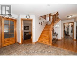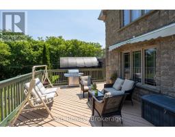 This spacious stone home offers over 3,200 sq ft of finished living space, ideal for large families or multi-generational living. The main floor features a grand foyer with vaulted ceilings, a powder room, and a striking solid maple staircase that sets the tone for the quality throughout. You'll find an inviting family room filled with natural light, a formal living/dining area perfect for gatherings, and a large custom kitchen with solid maple cabinetry, granite countertops, built-in appliances including a gas cooktop and double wall ovens, a center island with bar-top seating, and a bright breakfast area with access to the back deck. Maple hardwood and tile flooring run throughout both the main and second levels. Upstairs, there are five spacious bedrooms and three full bathrooms, including a grand primary suite with a walk-through closet and 4-piece ensuite. The second floor also offers access to a rooftop patio with hot tub hook-up -- an ideal spot to relax and unwind. The finished lower level includes a self-contained in-law suite with kitchen, 3-piece bath, laundry, living area, walk-out to a patio, and walk-up access to the attached double garage. The remaining lower level space is used for storage and a rec room, with potential for future finishing. With plenty of room for separation and privacy, along with generous shared spaces perfect for everyone to gather, this home is well-suited for a variety of living arrangements. Set on a quiet in-town street on nearly half an acre, with an interlocking stone driveway, large deck with retractable awning, and close proximity to all of Owen Sounds amenities, this home offers exceptional space, functionality, and timeless design. (id:46441)