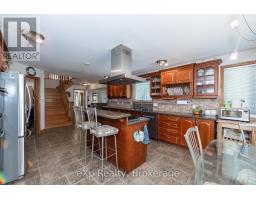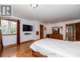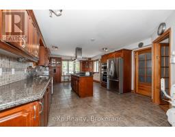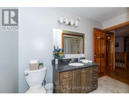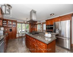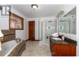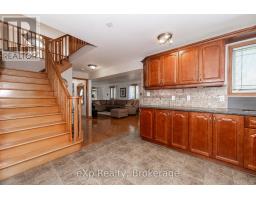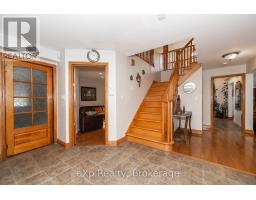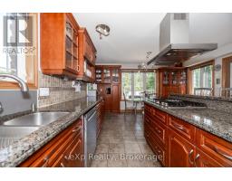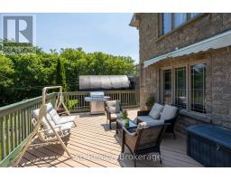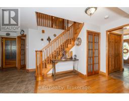 This spacious stone home offers over 3,200 sq ft of finished living space, ideal for large families or multi-generational living. The main floor features a grand foyer with vaulted ceilings, a powder room, and a striking solid maple staircase that sets the tone for the quality throughout. You'll find an inviting family room filled with natural light, a formal living/dining area perfect for gatherings, and a large custom kitchen with solid maple cabinetry, granite countertops, built-in appliances including a gas cooktop and double wall ovens, a center island with bar-top seating, and a bright breakfast area with access to the back deck. Maple hardwood and tile flooring run throughout both the main and second levels. Upstairs, there are five spacious bedrooms and three full bathrooms, including a grand primary suite with a walk-through closet and 4-piece ensuite. The second floor also offers access to a rooftop patio with hot tub hook-up - an ideal spot to relax and unwind. The finished lower level includes a self-contained in-law suite with kitchen, 3-piece bath, laundry, living area, walk-out to a patio, and walk-up access to the attached double garage. The remaining lower level space is used for storage and a rec room, with potential for future finishing. With plenty of room for separation and privacy, along with generous shared spaces perfect for everyone to gather, this home is well-suited for a variety of living arrangements. Set on a quiet in-town street on nearly half an acre, with an interlocking stone driveway, large deck with retractable awning, and close proximity to all of Owen Sounds amenities, this home offers exceptional space, functionality, and timeless design. (id:46441)