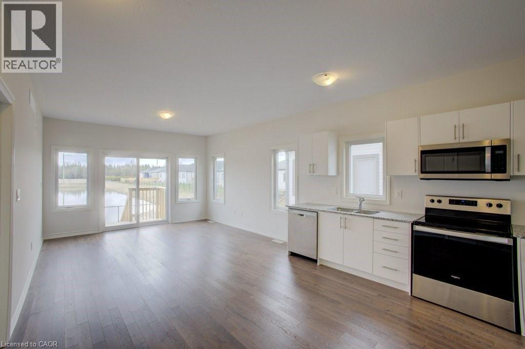 Welcome to 92 Cheryl Ave. A 2024 built, freehold, 2 bedroom 2 bathroom, end unit, bungalow townhome, located in the community of Atwood. Featuring 9ft ceilings throughout, quartz counters, a pond view, a large master ensuite bathroom and an open concept design. The expansive basement provides incredible potential for future development, whether you envision additional living space, a home office, gym, entertainment area or simply to let your kids run around. This townhome is a freehold property with no condo fees, giving you long term value. A stylish, low maintenance home, book your private viewing. (id:46441)