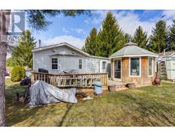 Enjoy a more relaxed lifestyle at the lovely Happy Hills Retirement Resort. Located in a gated community this lovely 2 or 3 bedroom home offers approximately 1366 square feet of living space with 2 full baths, a spacious eat in kitchen, a large living room, primary bedroom with a cheater ensuite and built in closet with dresser drawers. The back room could be either a 3 rd bedroom or office or family room. The rear yard offers a wood deck, a closed in insulated gazebo great for entertaining or those rainy nights, and extra storage with the garden shed with hydro and additional storage located under the unit and worry no more about the hydro going off, this unit offers a Generlink generator, also included for this unit is a pop up carport great for the winter months. Owning a home in this resort you have access to the community clubhouse with indoor pool, social events, and access to the trailer park amenities during the summer season. Call today for more information or your own private viewing on this great home, it might be just what you have been looking for. (id:46441)
